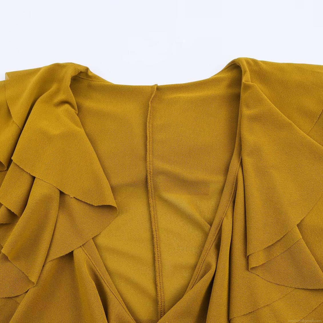Solid Color, Ruffles, V-neck, Layered Decoration, Lantern Sleeves