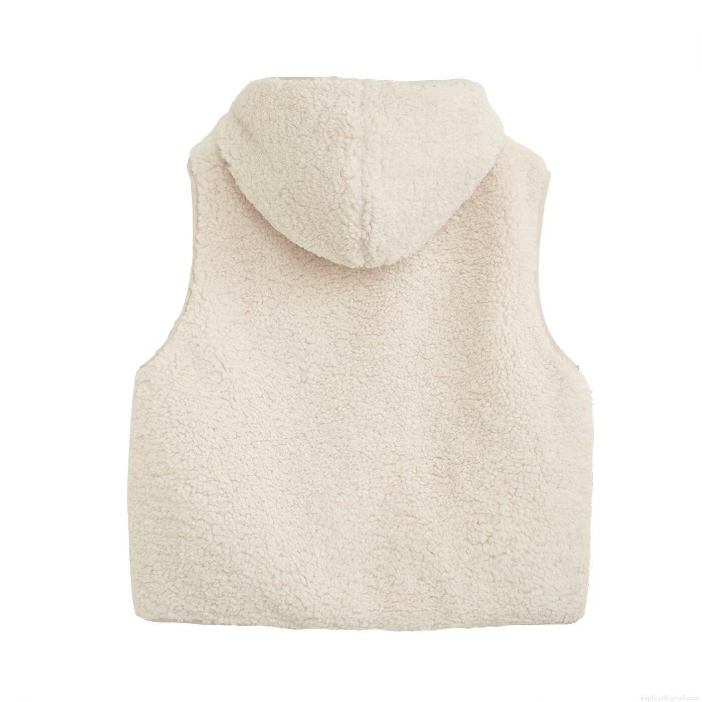 Solid Color, Hooded Design, Lamb Wool Texture, Double Pockets, Zipper Placket