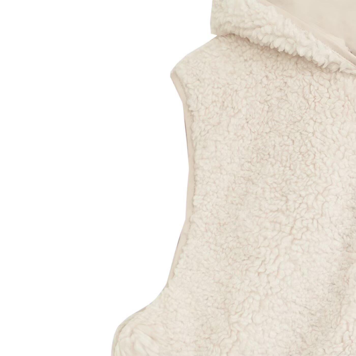 Women's Casual Sherpa Fleece Hooded Vest Zip Up Sleeveless Jacket Warm Thickened Winter Waistcoat With Pockets Outerwear
