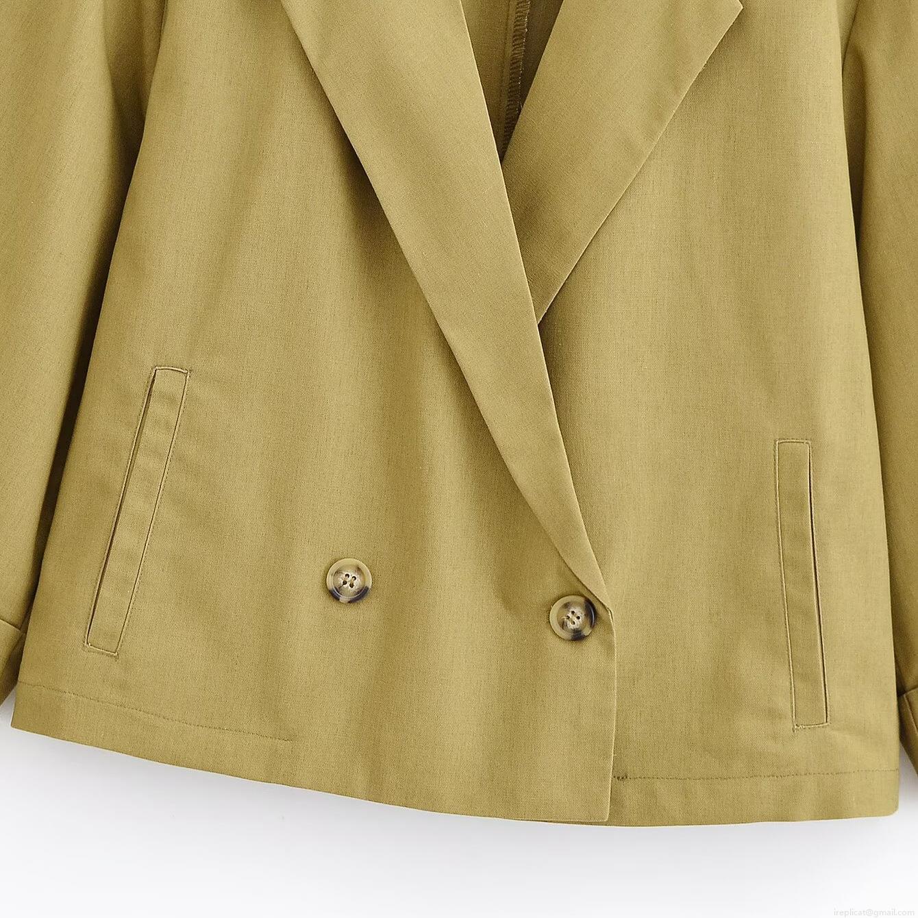 Women's Casual Short Blazer Jacket Linen-Like Polyester Double Breasted Notch Lapel Solid Color Coat For Office Commute Summer Chic Outerwear
