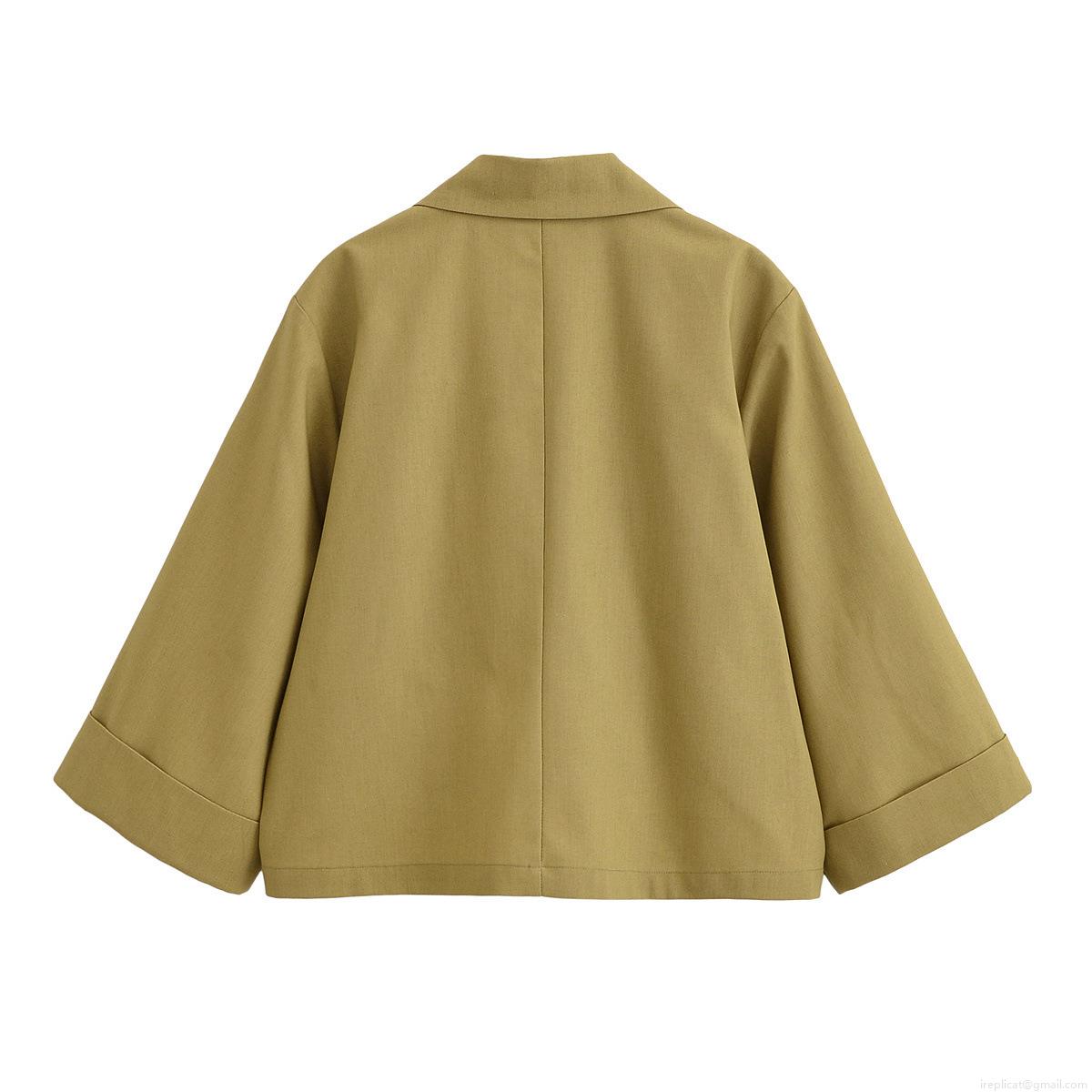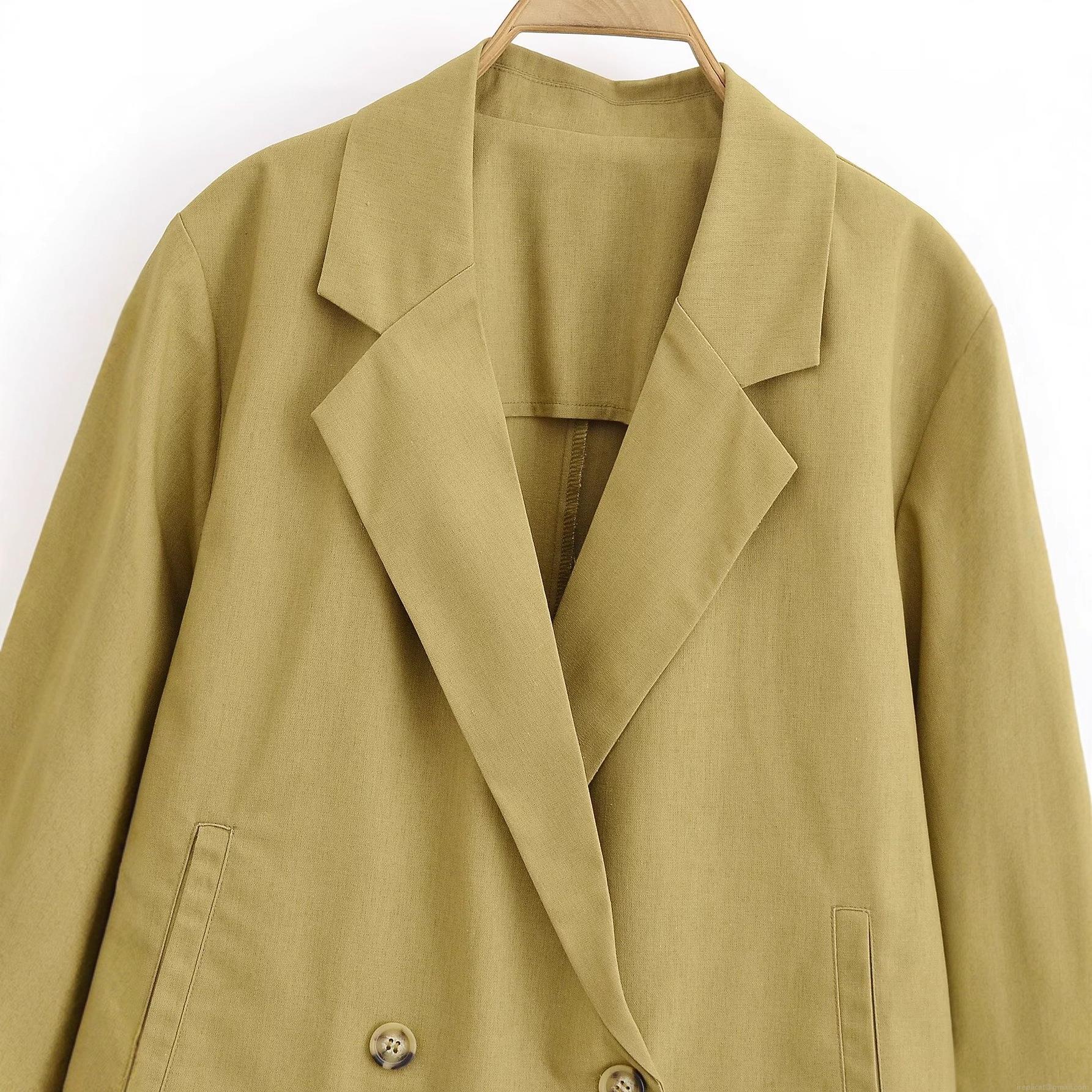 Women's Casual Short Blazer Jacket Linen-Like Polyester Notched Lapel Double Breasted Outerwear For Daily Work Office Women