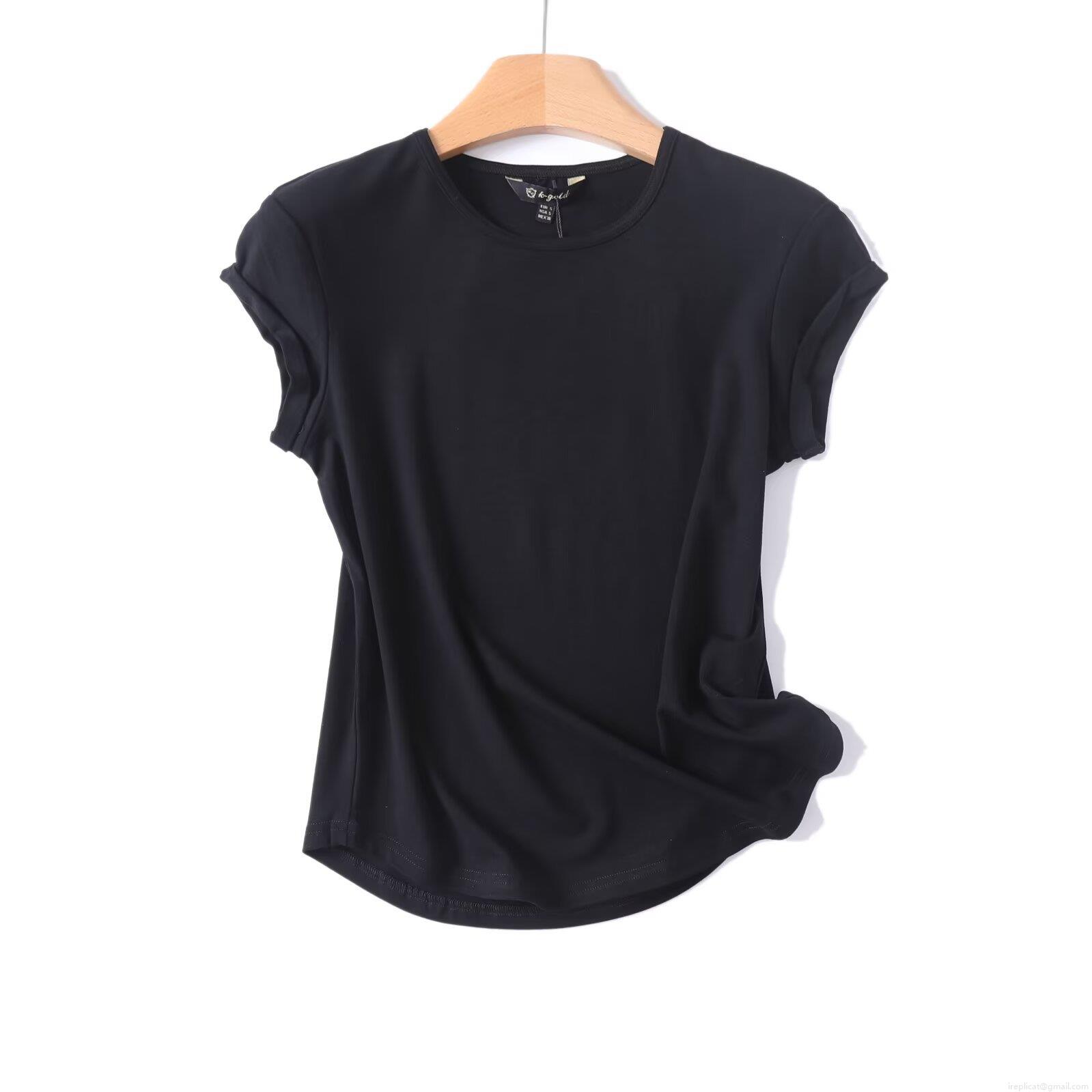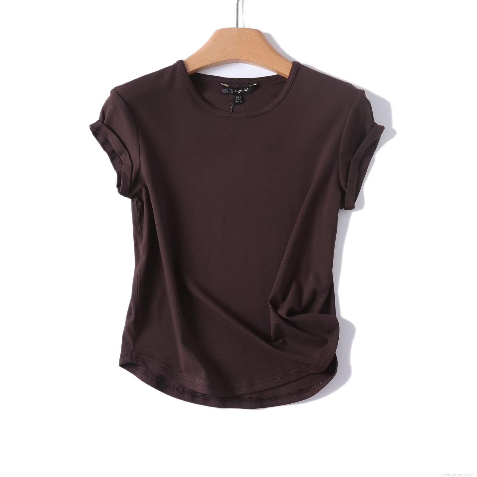 Women's Casual Solid Color Cotton Blend Round Neck T-Shirt Short Sleeve Basic Top With Curved Hem For Summer Streetwear