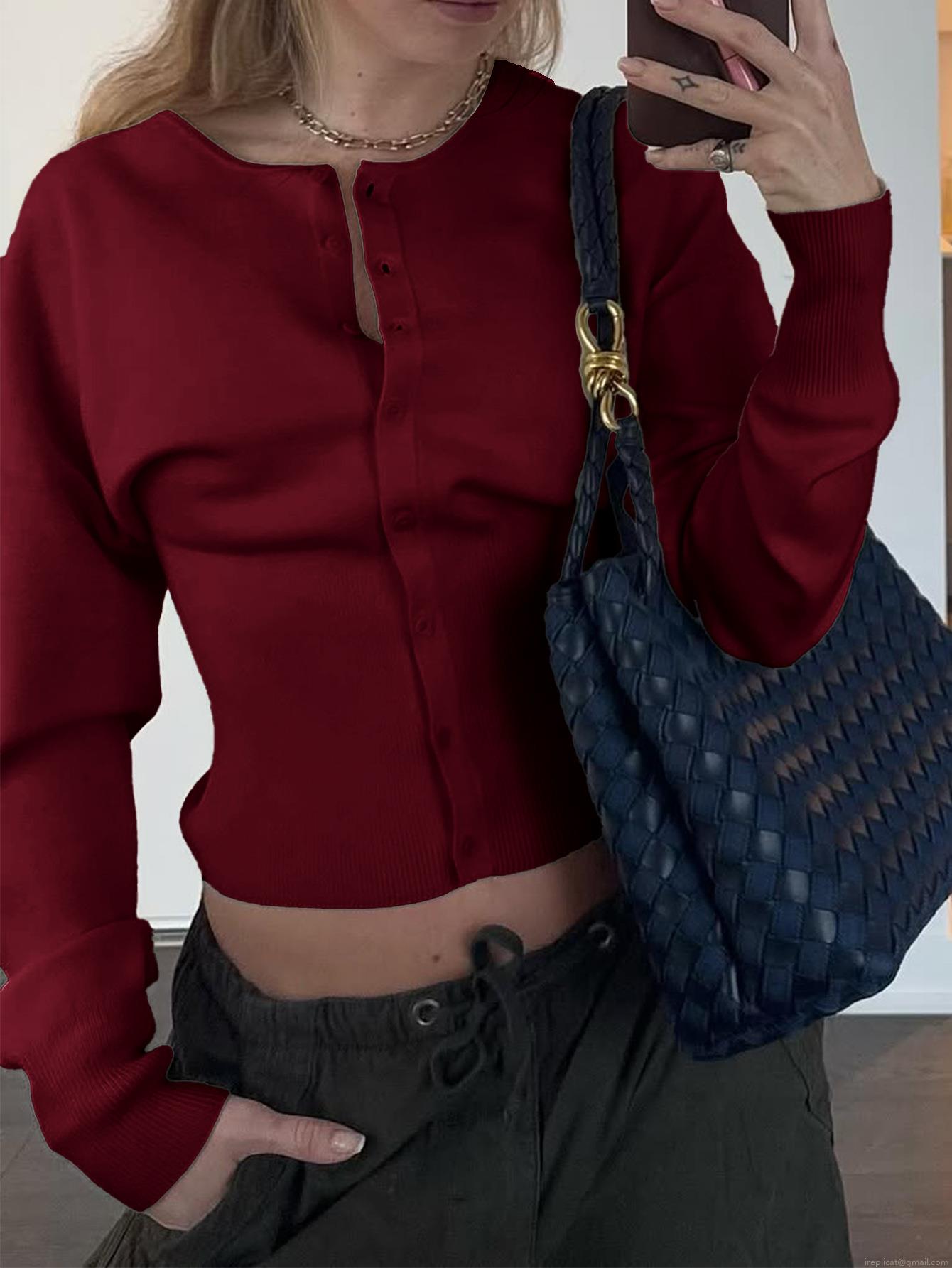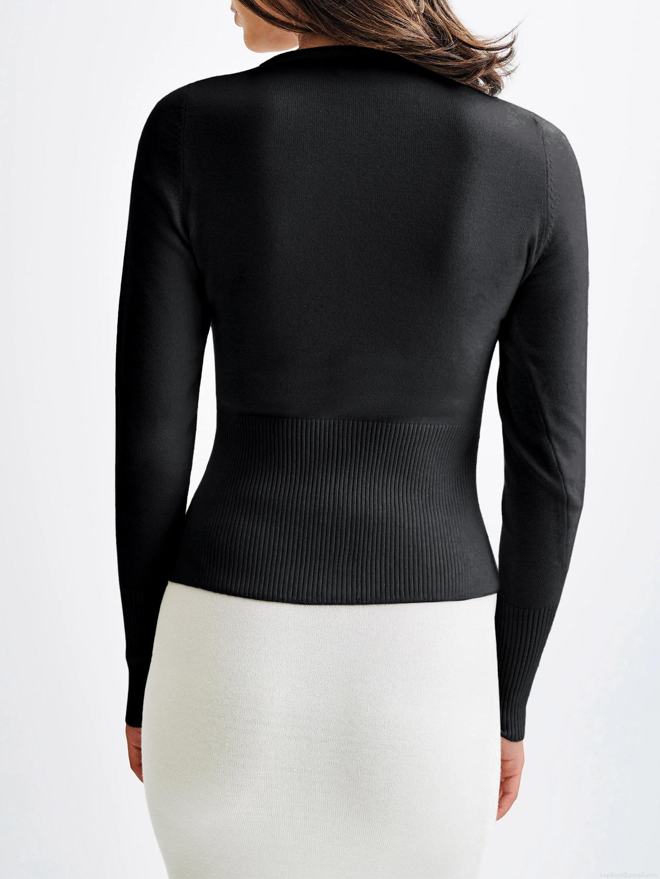 Women's Casual Solid Color Long Sleeve Knitted Cardigan Sweater Viscose Blend Round Neck Button Down Ribbed Waist Slim Fit Autumn Winter Knitwear Top