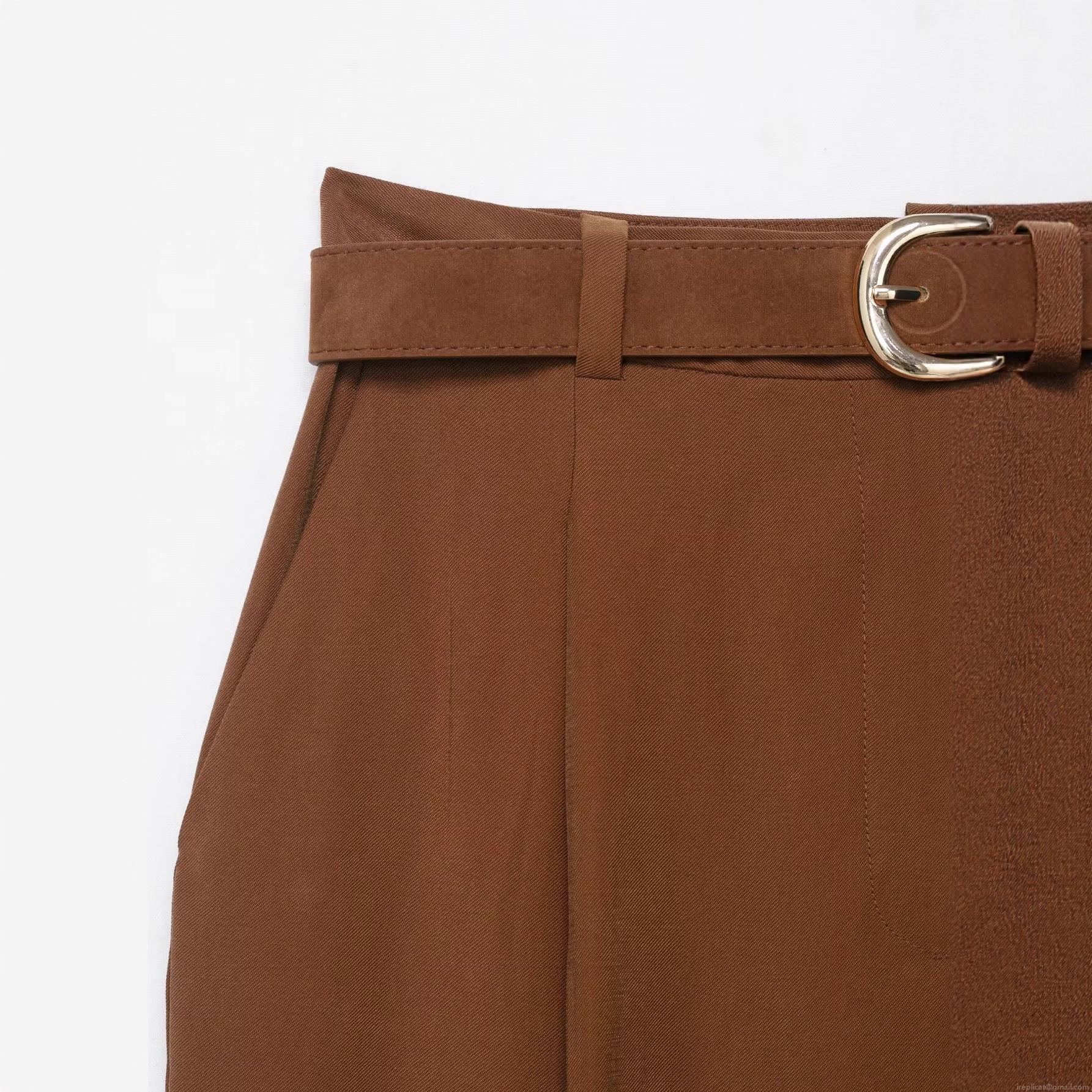 Women's High Waist Straight Leg Pants With Brown Leather Belt...