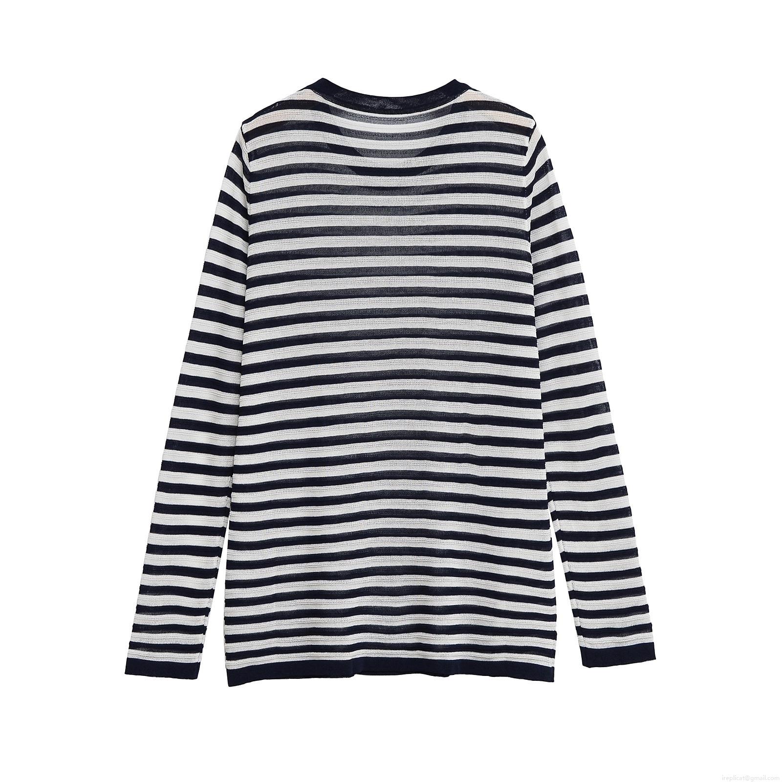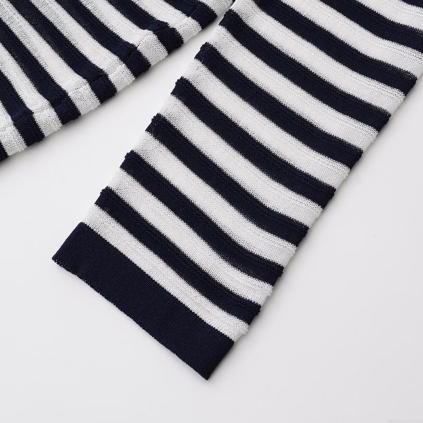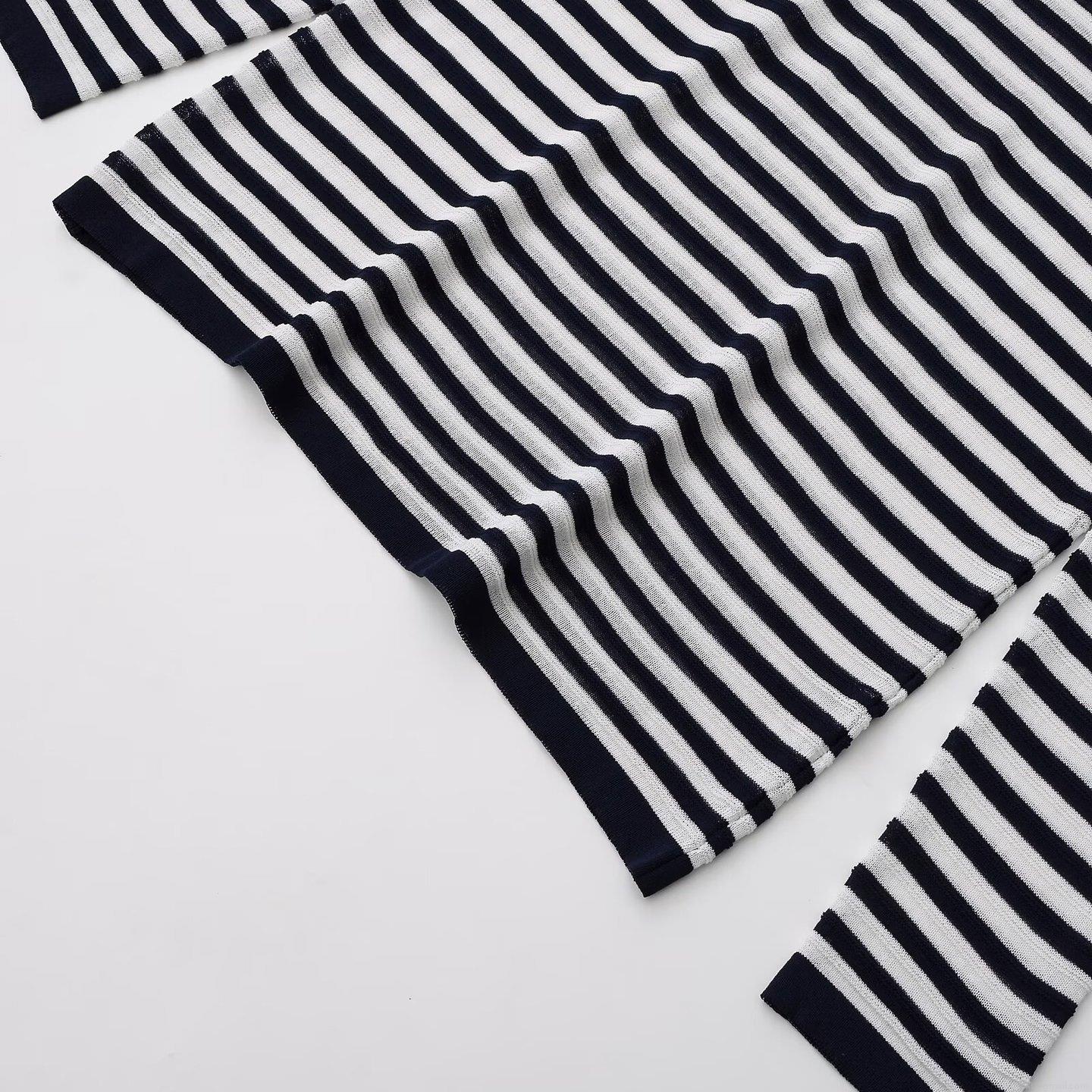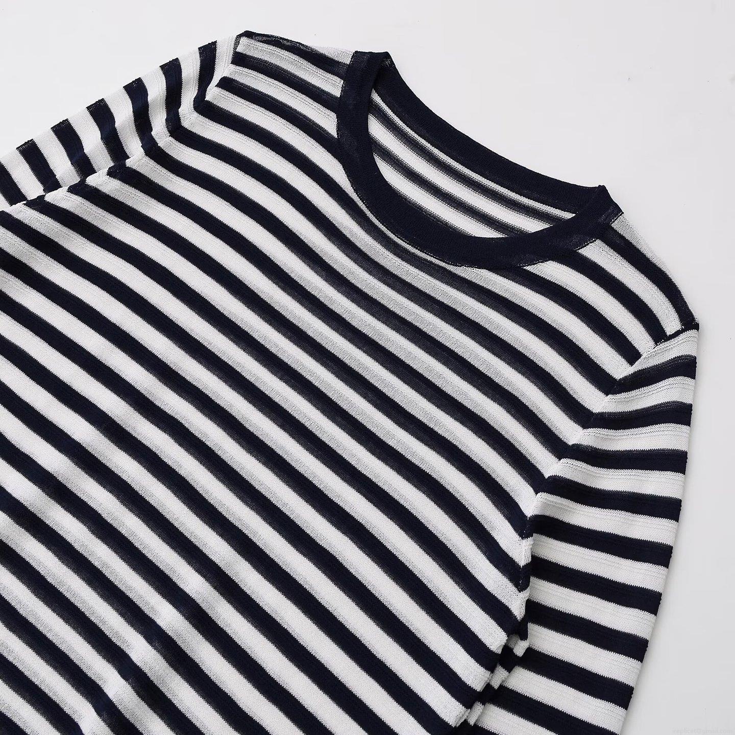 Women's Casual Striped Long Sleeve Knit T-Shirt Mercerized Cotton Round Neck Loose Pullover Top Spring Summer Fashion Minimalist Striped Pattern Comfortable Tee Shirt