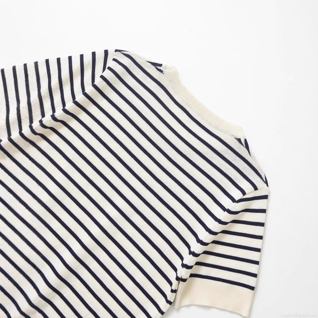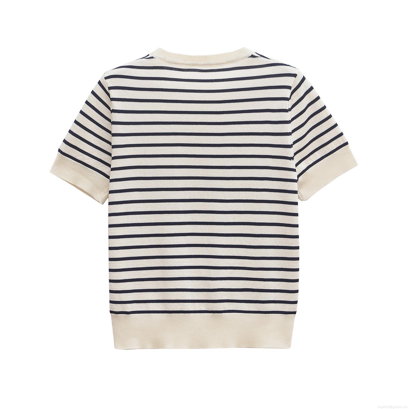 Women's Casual Striped Short Sleeve Knit T-Shirt Crew Neck Mercerized Cotton Blend Top For Summer Streetwear Fashion Daily Wear