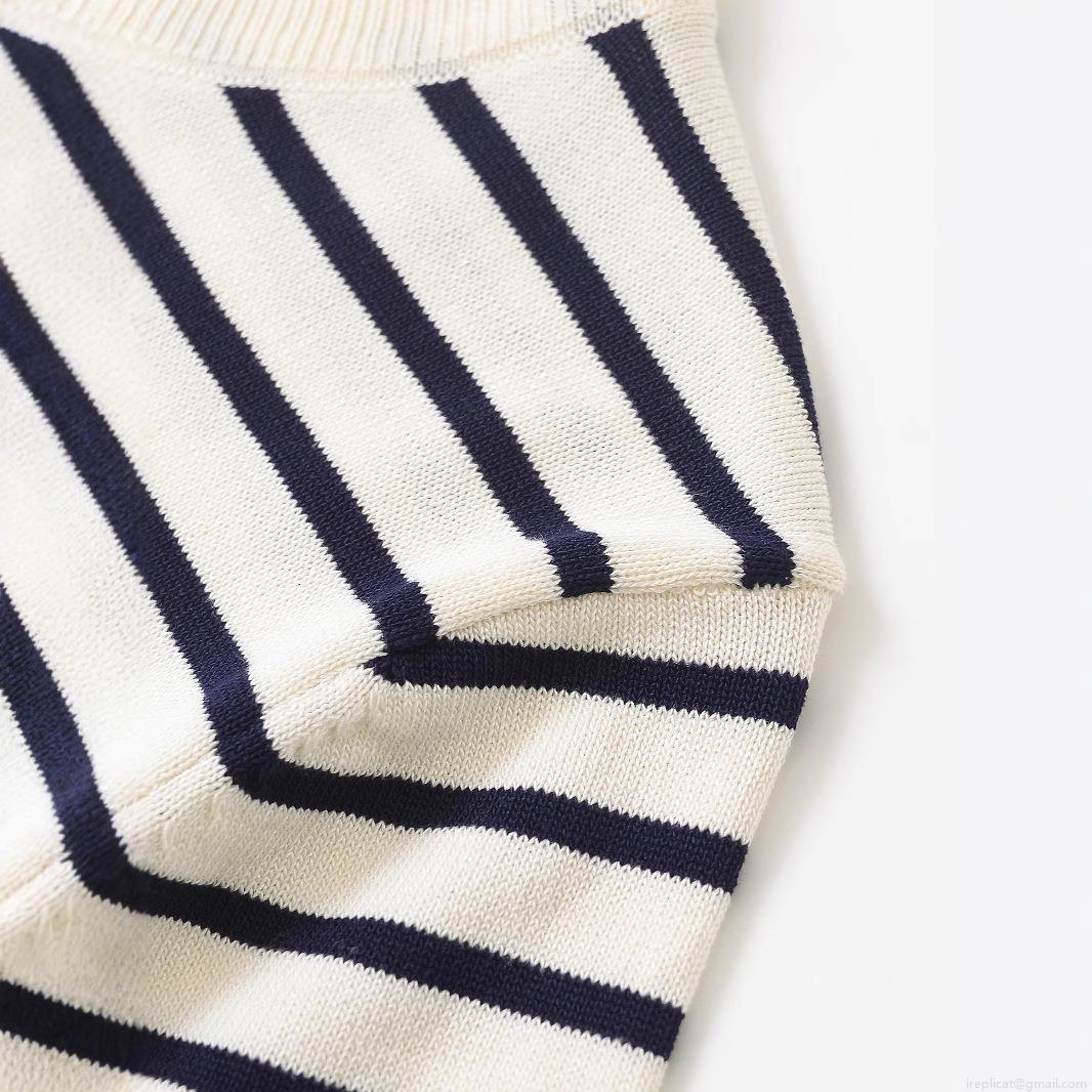 Women's Knitted Hollow Out T-Shirt V-Neck Contrast Stripe Breathable...