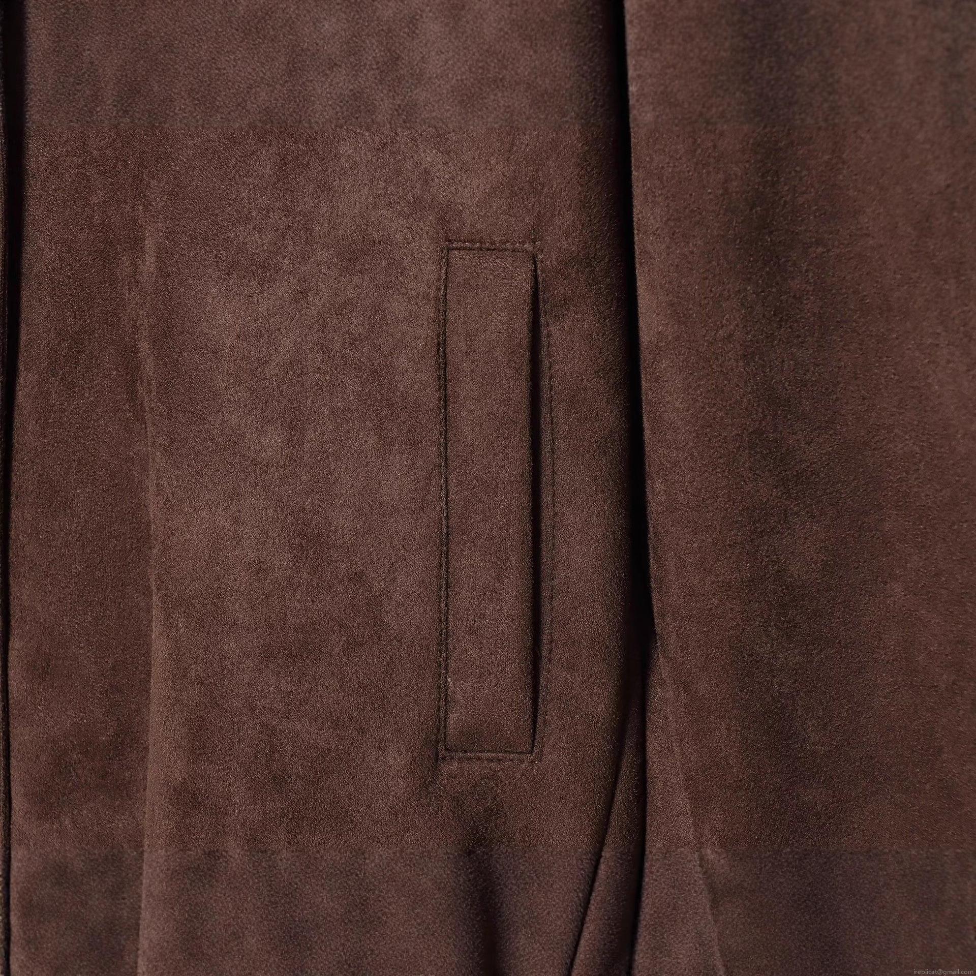 Women's Casual Suede Texture Jacket Streetwear Stand Collar Patchwork Long Sleeve Loose Fit Outerwear Metal Buttons Dark Brown Solid Color Autumn Coat
