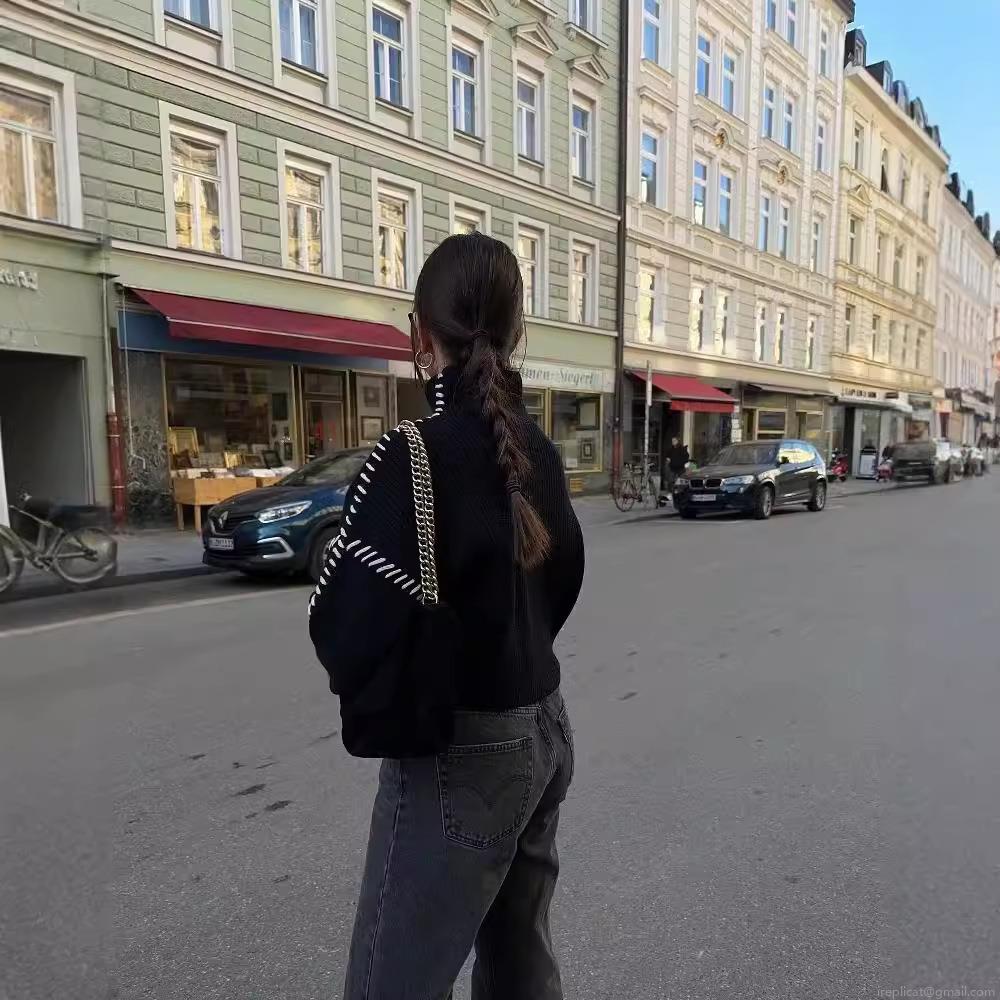 Women's Casual Turtleneck Knit Sweater Contrast Stitching Loose Fit Long Sleeve Pullover Autumn Winter Warm Polyester Jumper Top