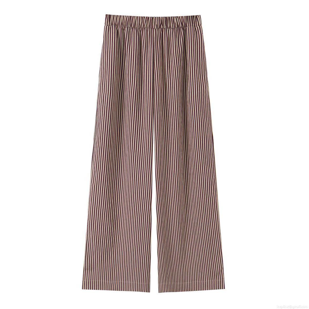 Women's Casual Vertical Striped Wide Leg Pants High Elastic Waist Loose Straight Trousers Streetwear Autumn Style Breathable Long Pants