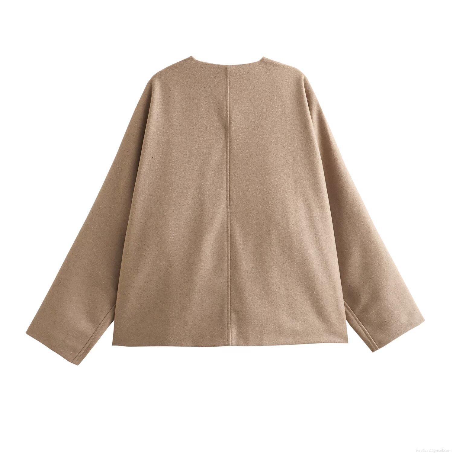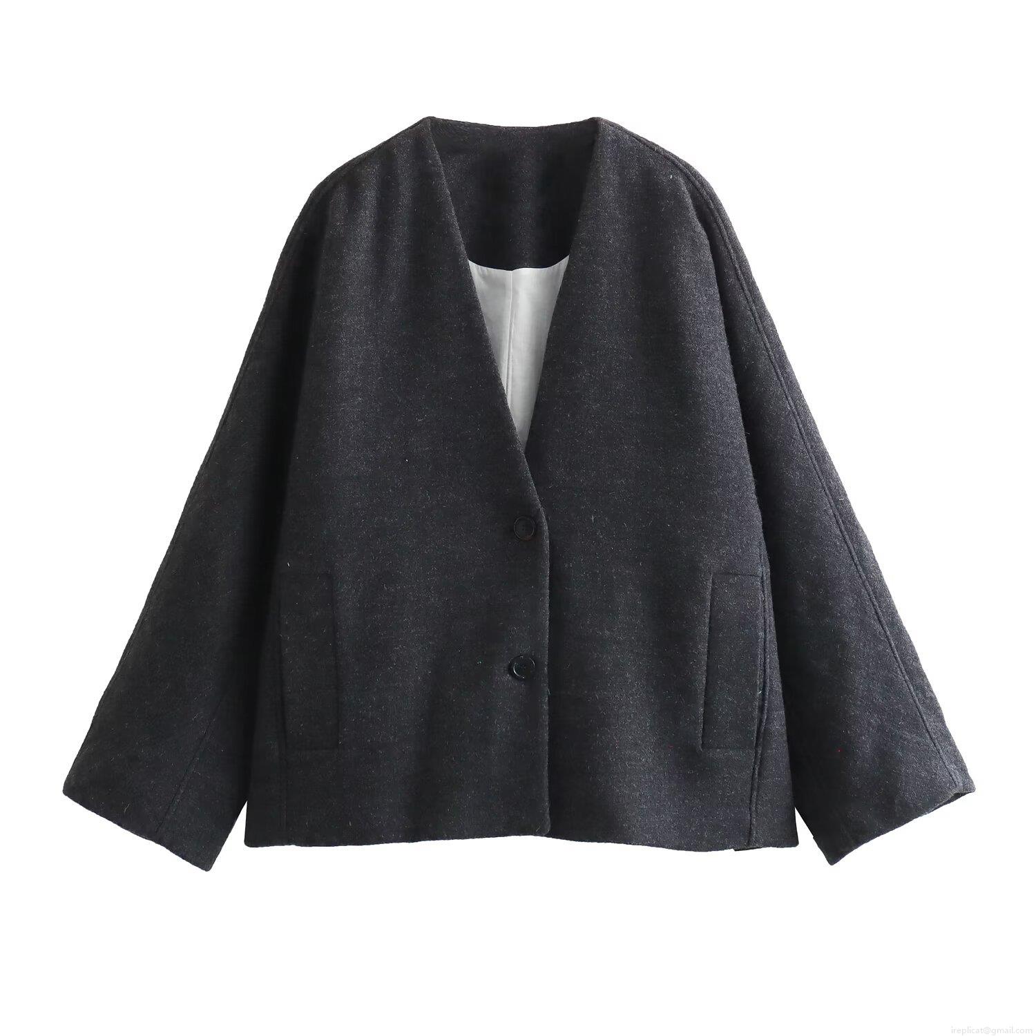 Women's Casual V-Neck Loose Jacket Coat Single Breasted Two Buttons Polyester Blend Outerwear With Pockets Streetwear Fashion For Spring