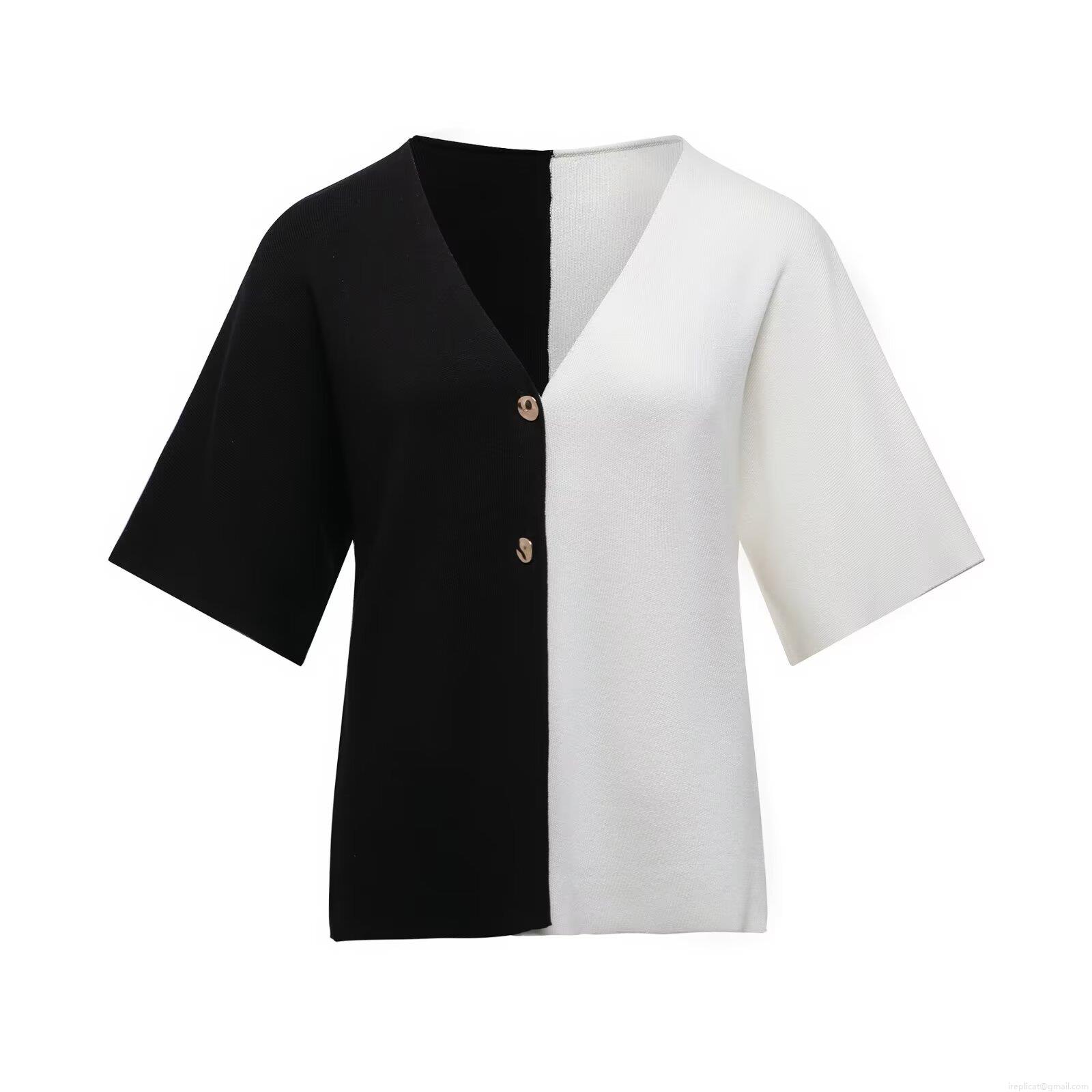 Women's Casual V-Neck Short Sleeve Knit T-Shirt Button Front Slim Fit Summer Cardigan Top Western Streetwear Lightweight Ribbed Texture Daily Tee for Ladies