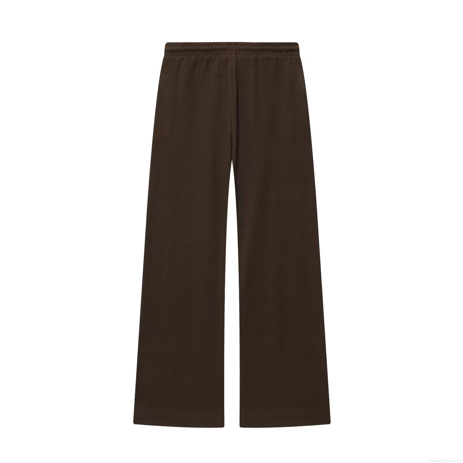 Solid Color, Drawstring, Elastic Waistband, Wide-leg, Knitted Texture