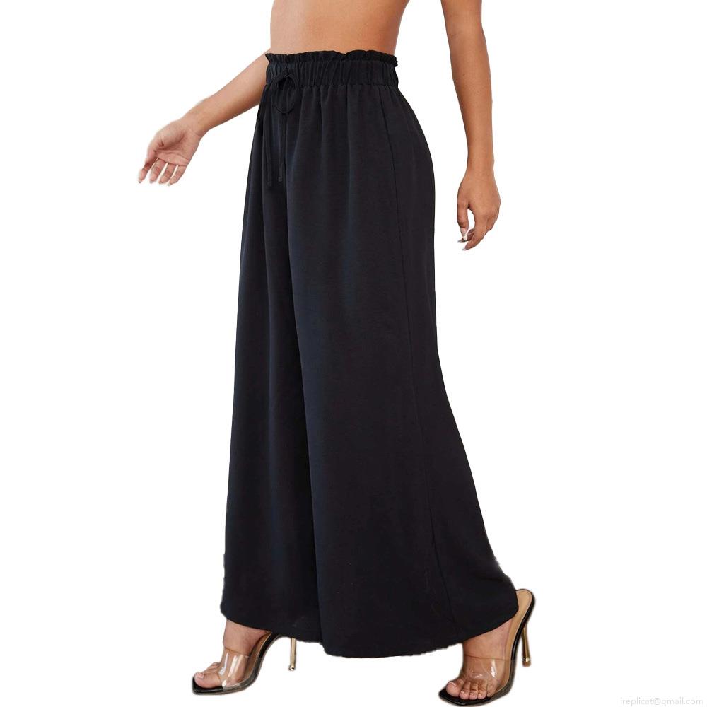 Solid Color, Elastic Waistband, Wide-leg Pants, High-waisted, Drape, Drawstring Design