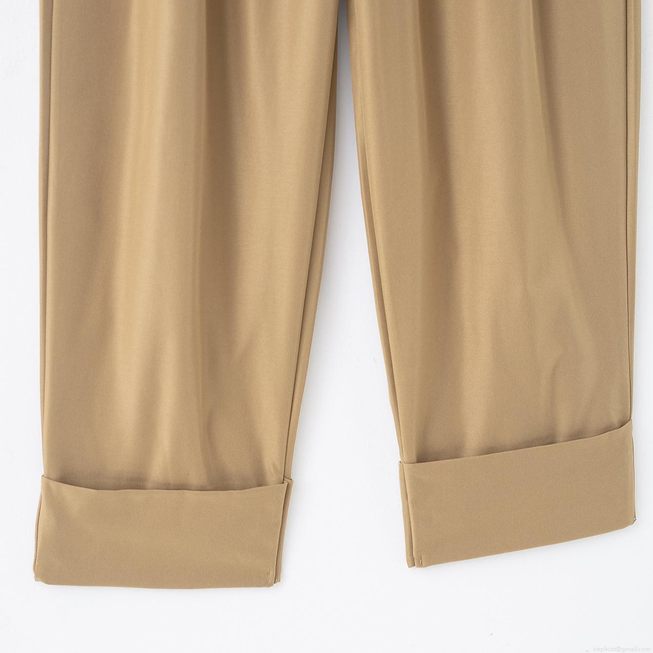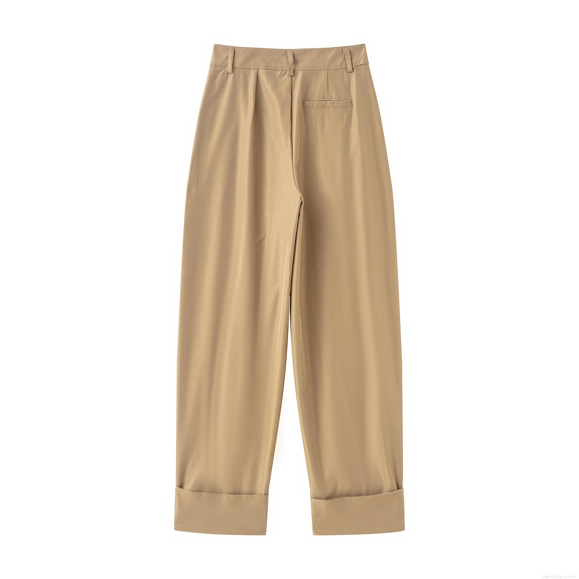 Solid Color, Buttons, Pleats, Rolled-up Trouser Legs