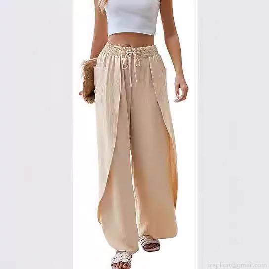 Solid Color, Pocket, Drawstring, Elastic Waistband, Side Fork, Wrinkled Texture