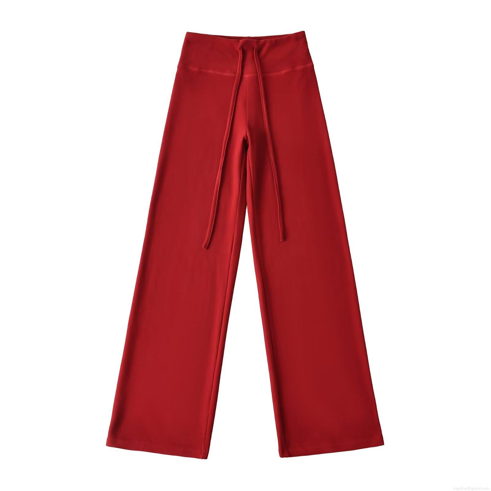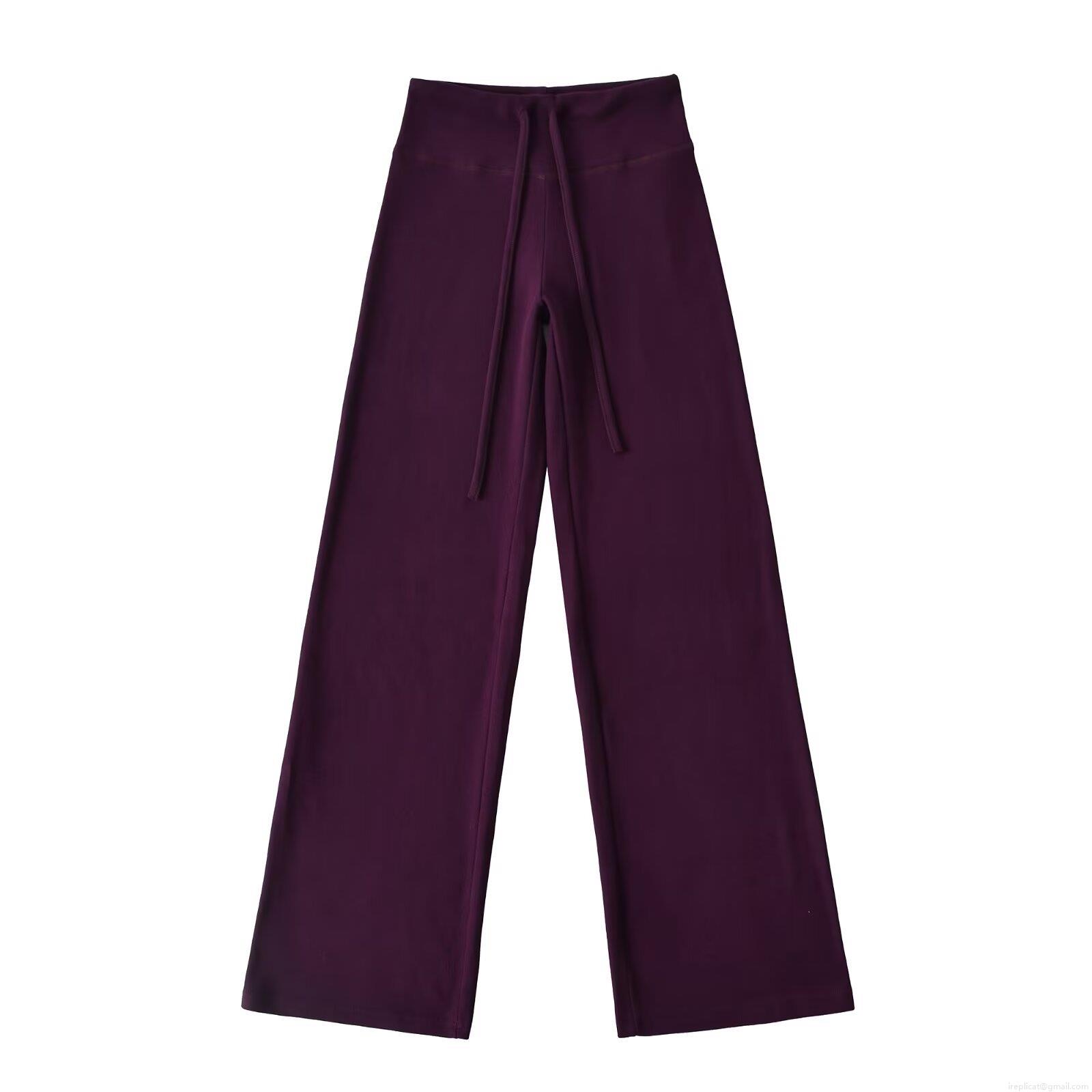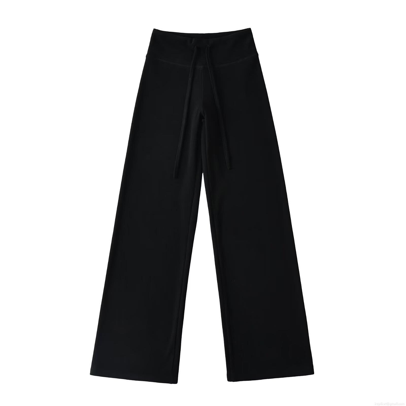 Women's Casual Wide Leg Pants Polyester Drawstring High Waist Solid Color Streetwear Autumn Winter Loose Fit Trousers For Daily Life
