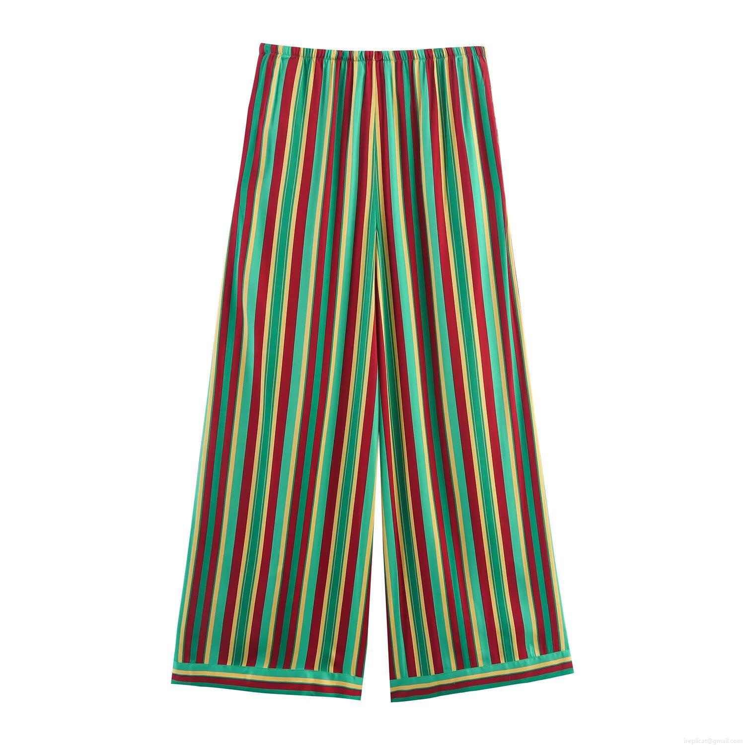 Women's Casual Wide Leg Pants Polyester Satin Vertical Stripe Drawstring Waist Loose Lightweight Trousers For Daily Streetwear Pyjama Style