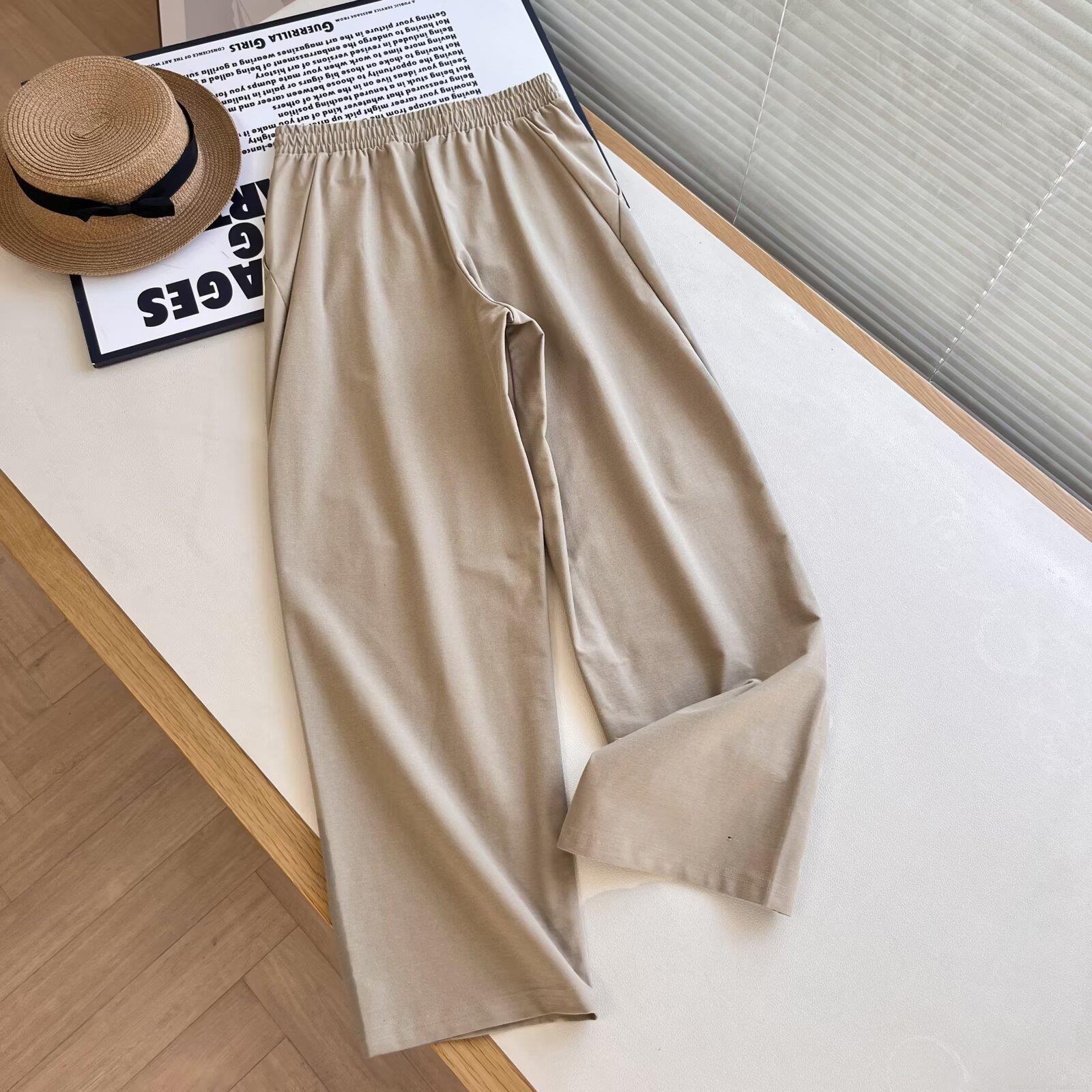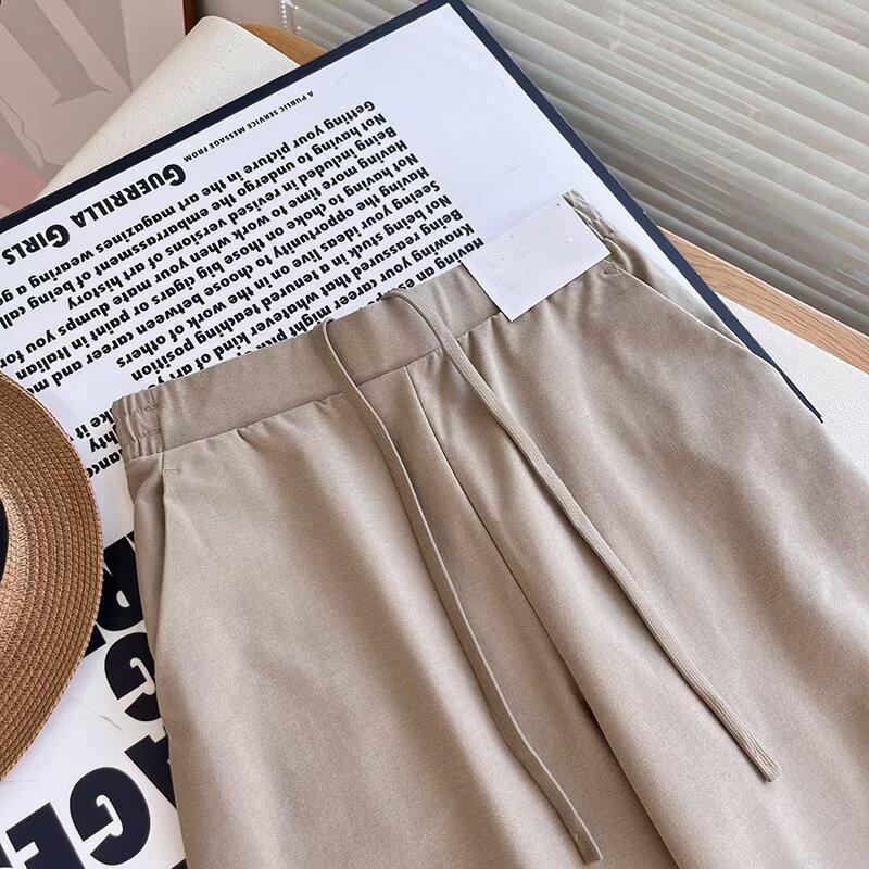 Solid Color, Straight Tube, Wide-leg, Elastic Drawstring, Side Pockets