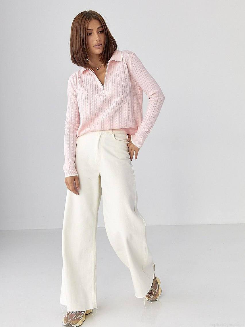 Solid Color, Half Zipper, Lapel, Twisted Texture, Twisted Rope, Knot Texture