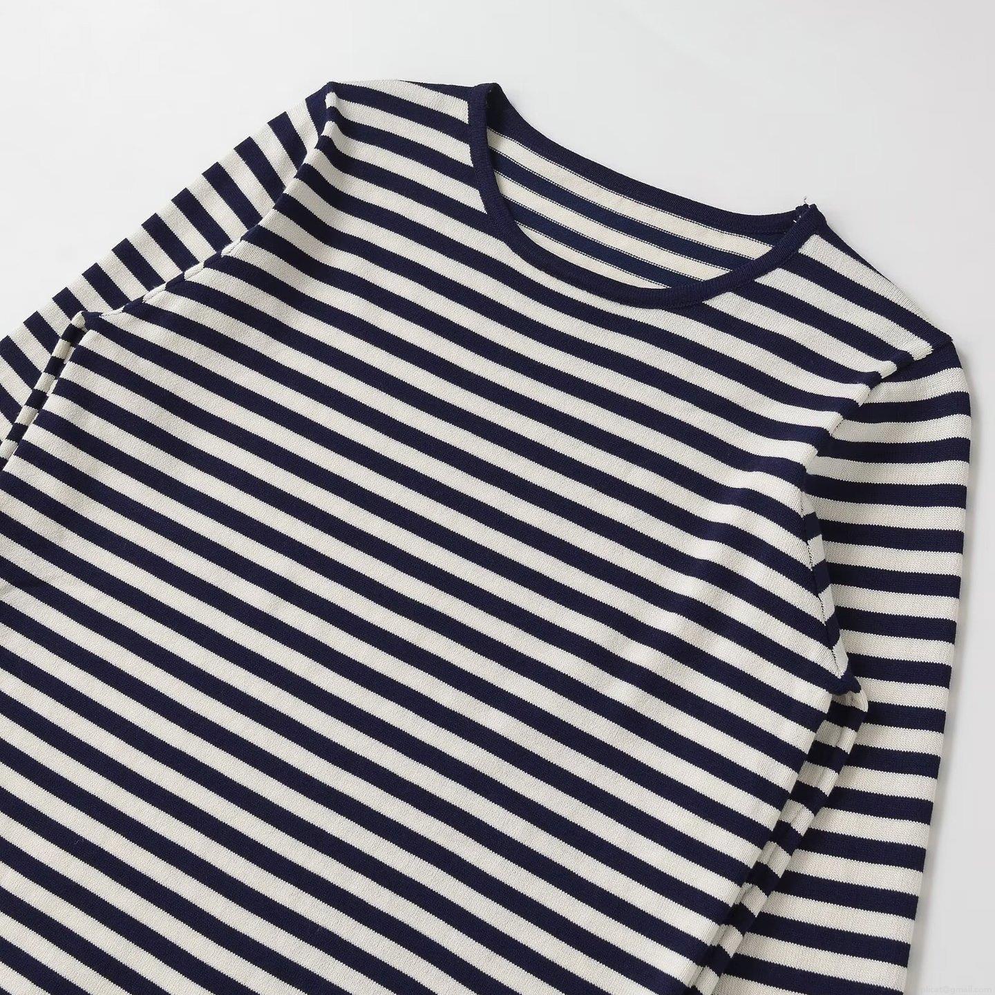 Women's Classic Horizontal Striped Knit Sweater Long Sleeve Round Neck Casual Polyester Blend T-Shirt Pullover Top For Daily Wear Spring Autumn