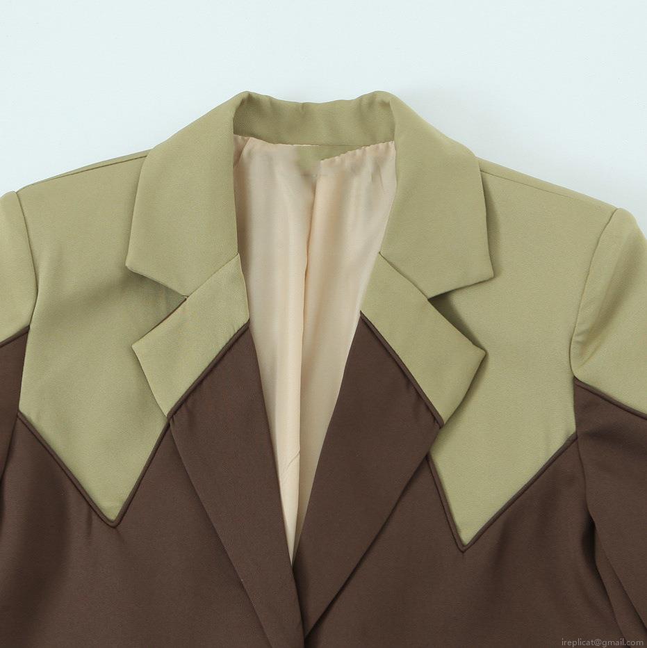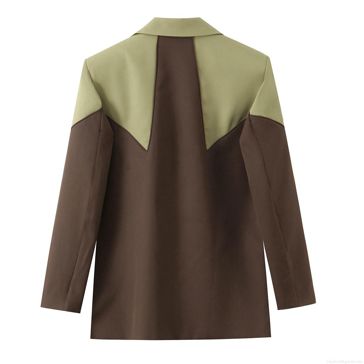 Women's Color-Block Blazer Jacket Notch Lapel Long Sleeve Single Breasted Suit Coat For Office Commuter Elegant Lady Polyester Viscose Blend Patchwork Outerwear Brown Olive Green
