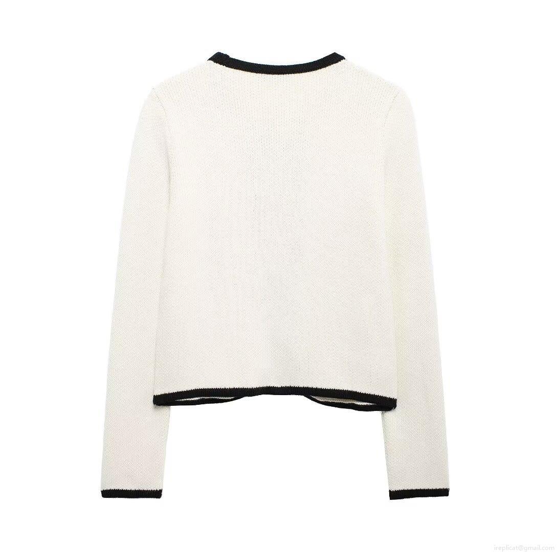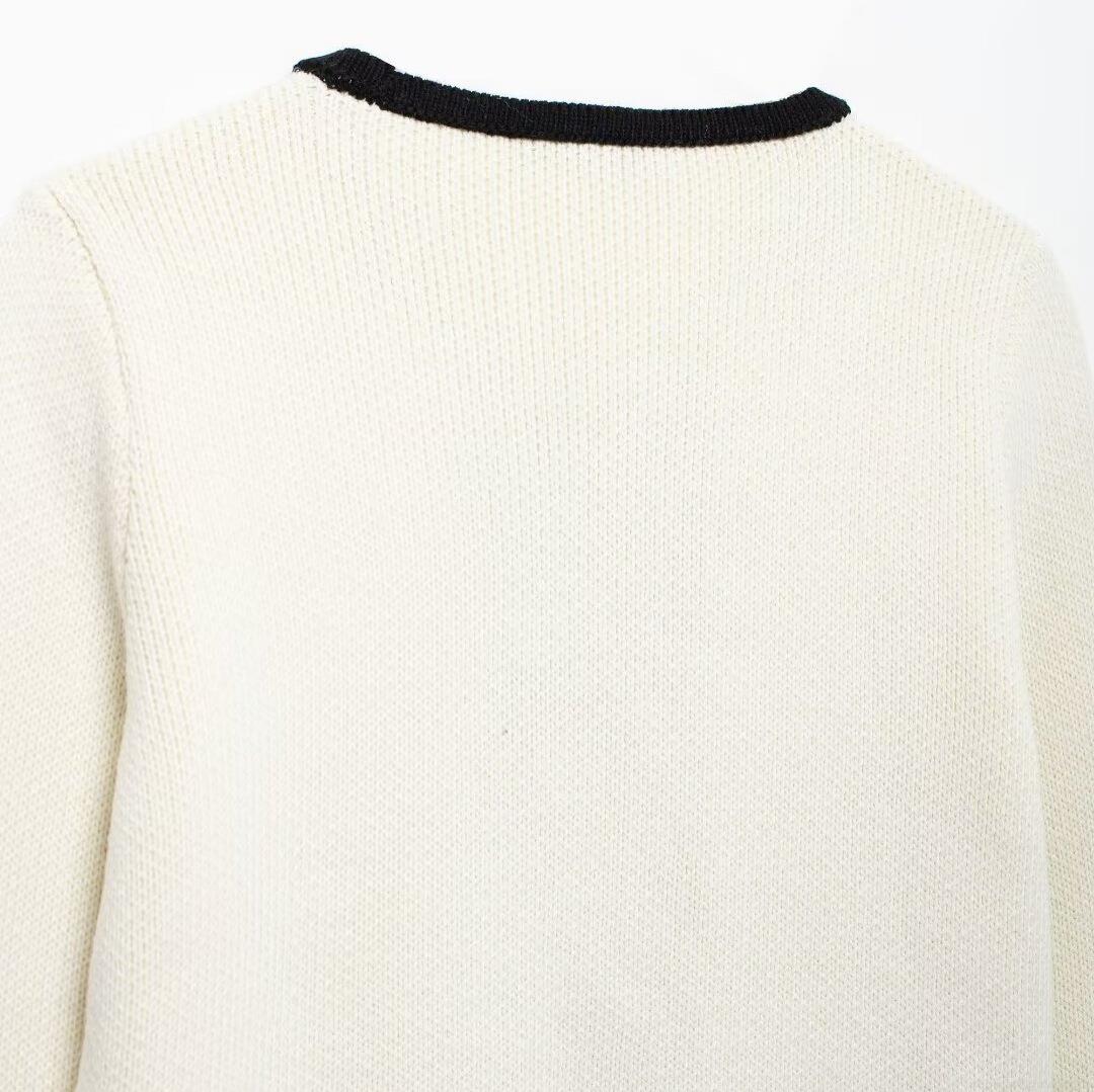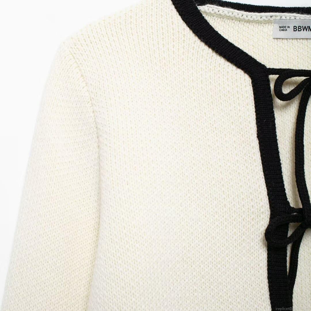 Women's Contrast Trim Knit Cardigan Bow Tie Front Elegant Long Sleeve Sweater Short Jacket Outerwear For Women Autumn Casual Tops