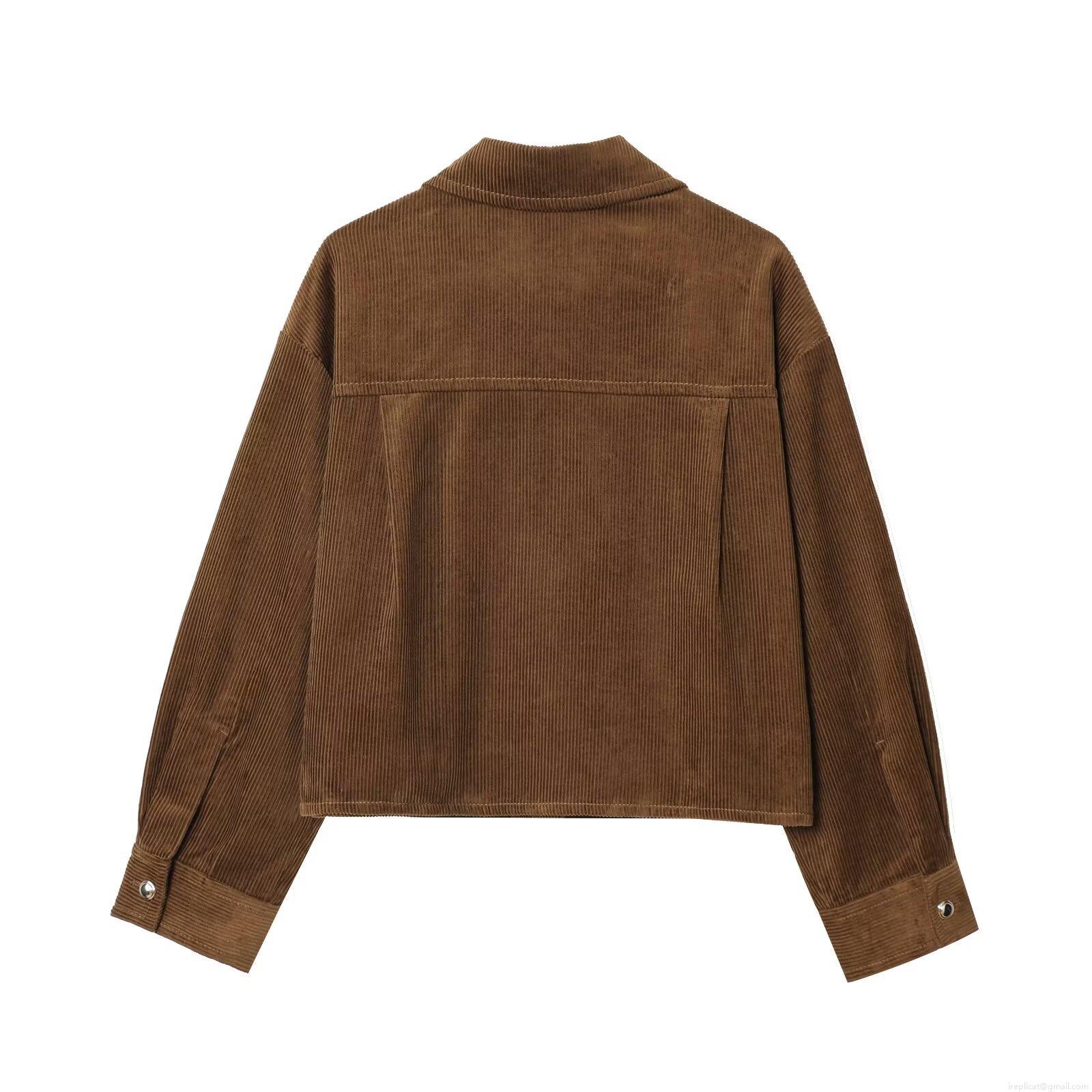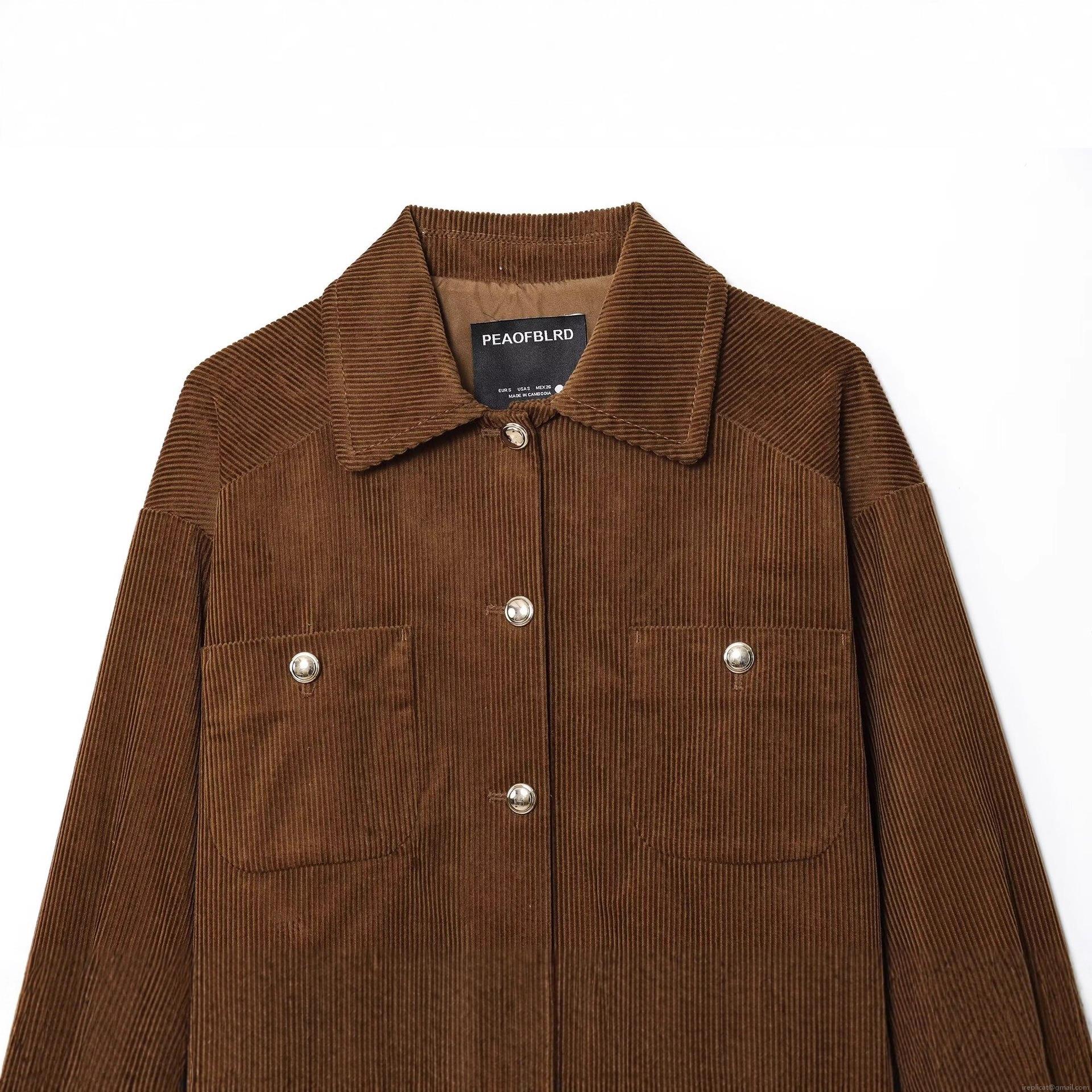 Women's Corduroy Jacket Long Sleeve Lapel Button Down Oversized Outerwear With Pockets Casual Solid Color Fashion Coat For Women