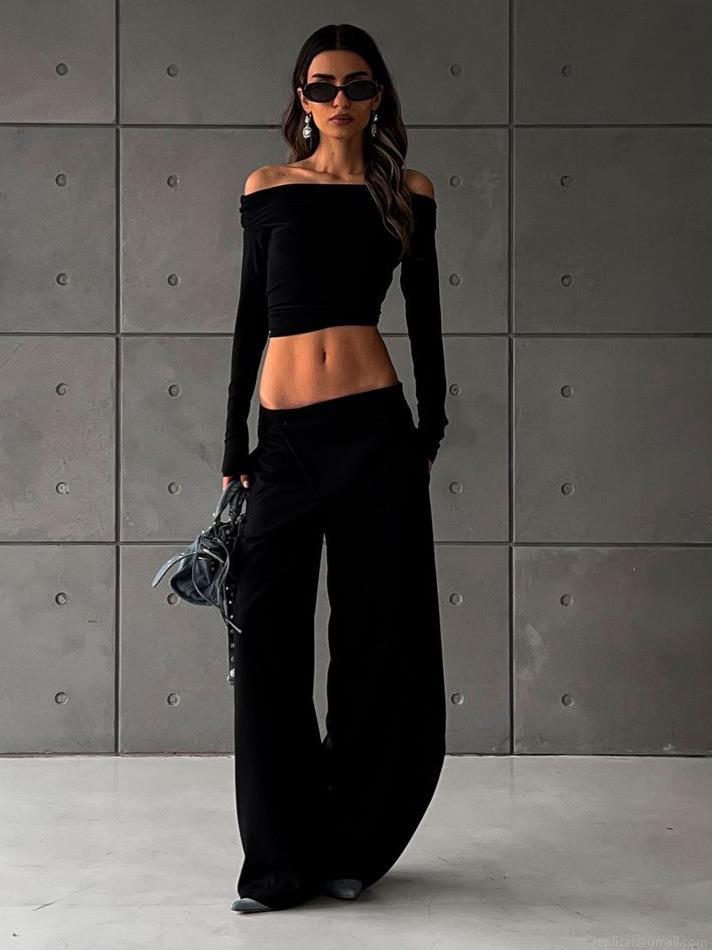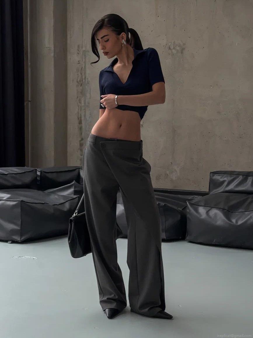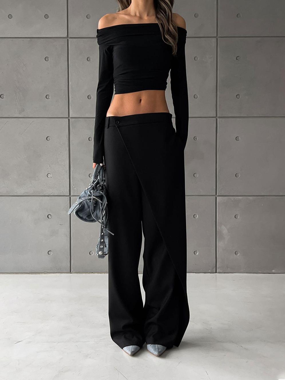 Women's Cotton Blend High Waist Wide Leg Trousers Asymmetric Wrap Front Suit Pants Minimalist Drapey Office Long Pants