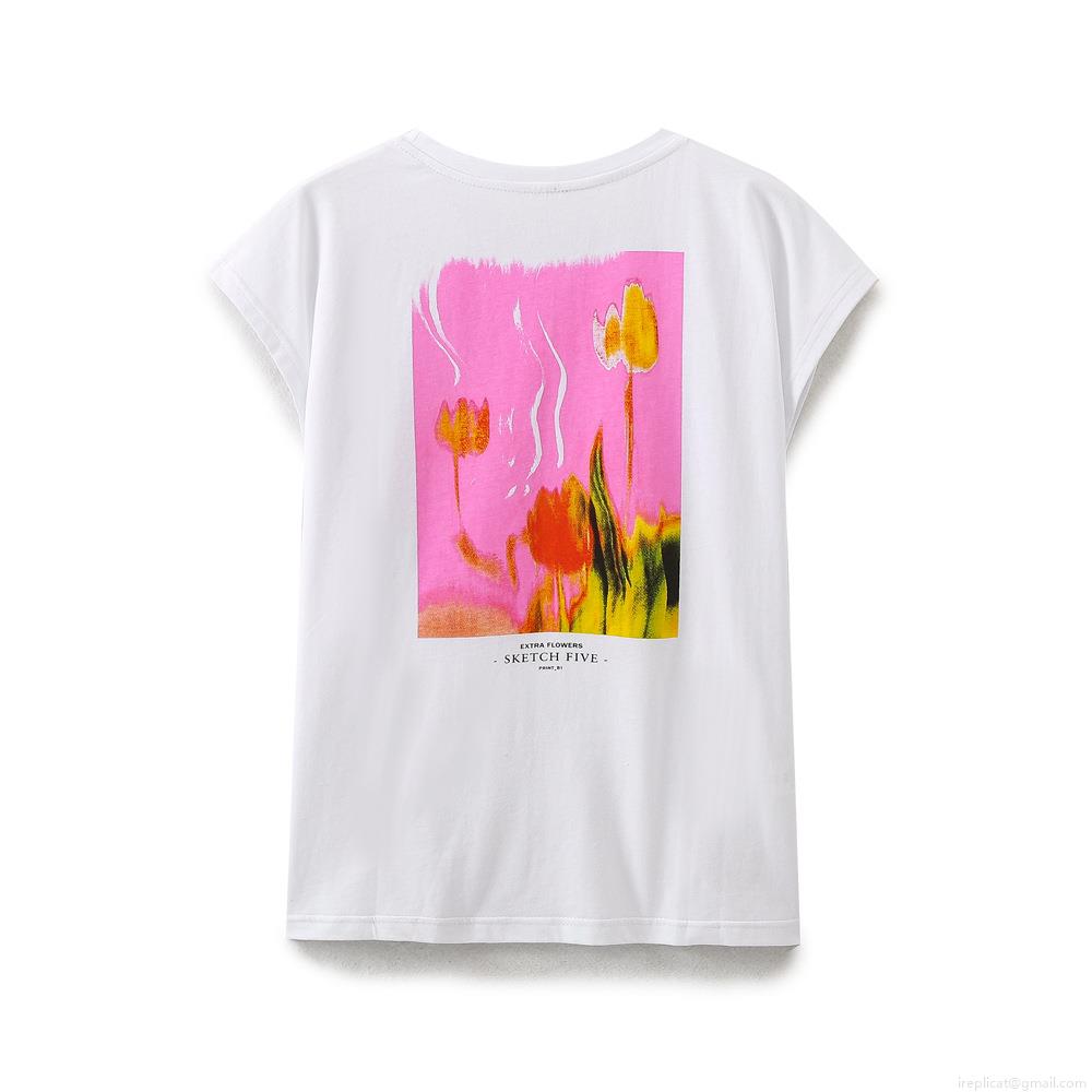 Women's Cotton Blend Tulip Graphic Print T-Shirt Loose Fit Short Sleeve Crew Neck Casual Summer Streetwear Tee Top