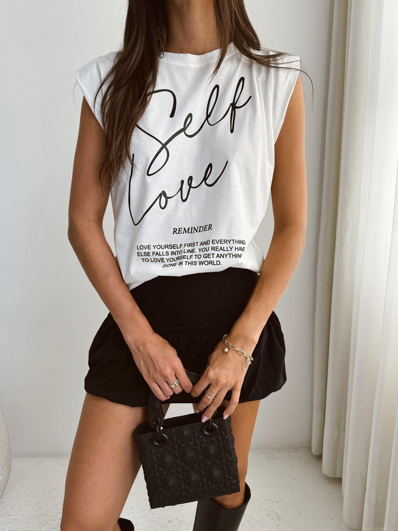 Letters, Sleeveless, Letter Print, Drop Shoulder Design, Inspirational Phrases