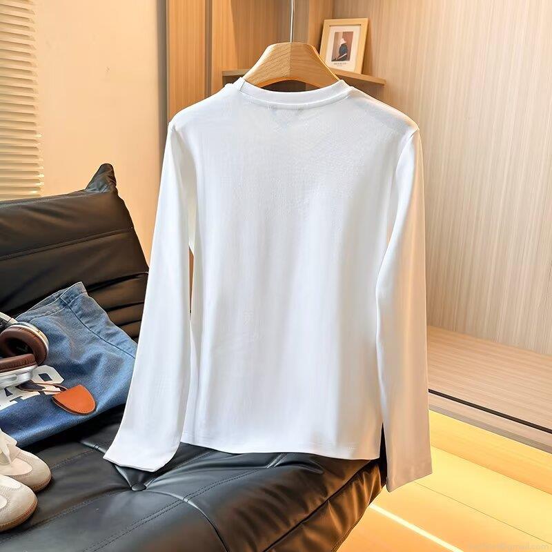 Women's Cotton Spandex Blend Crew Neck Long Sleeve T-Shirt Solid Color Simple Casual Basic Top For Fall Daily Comfort