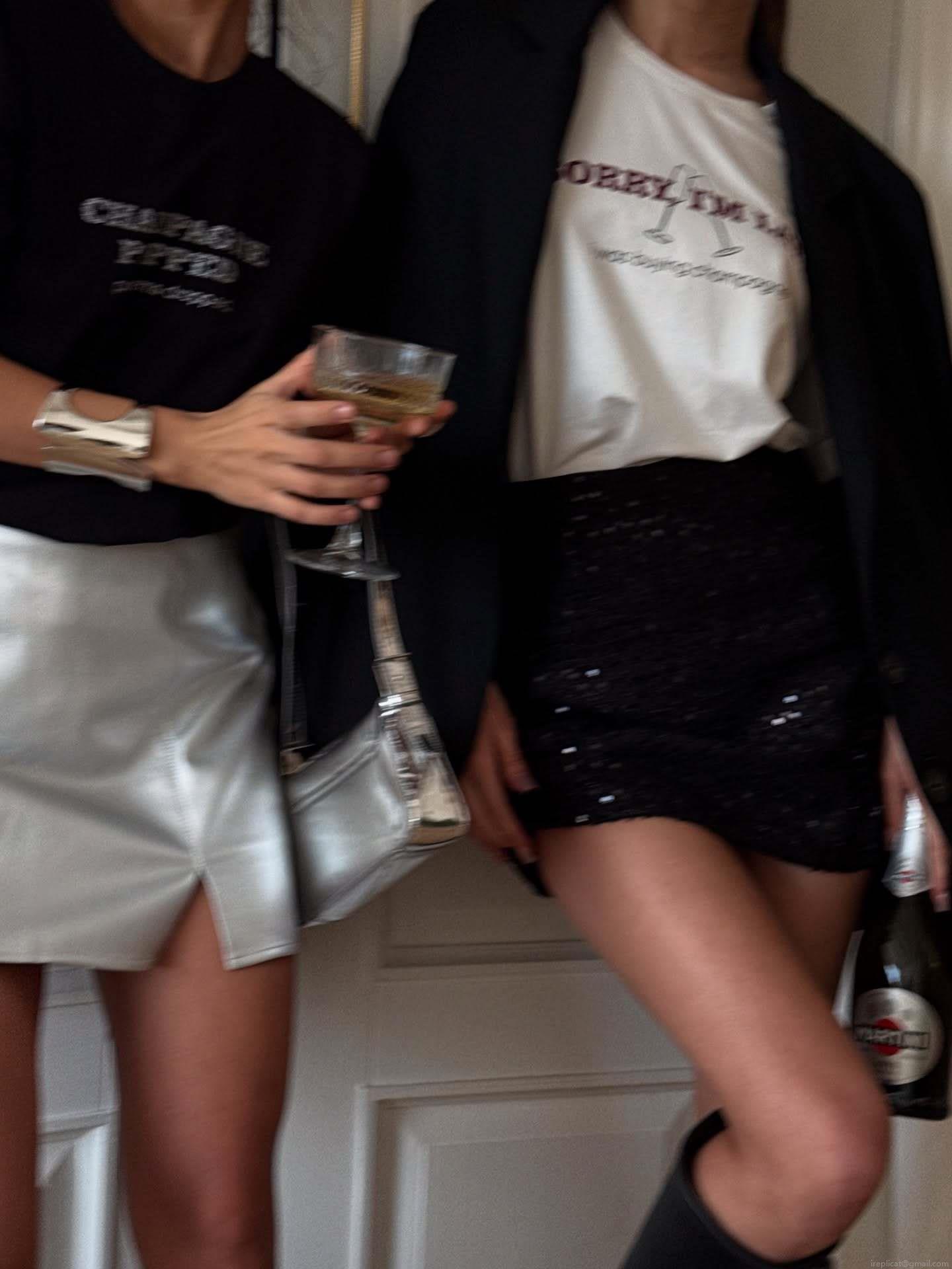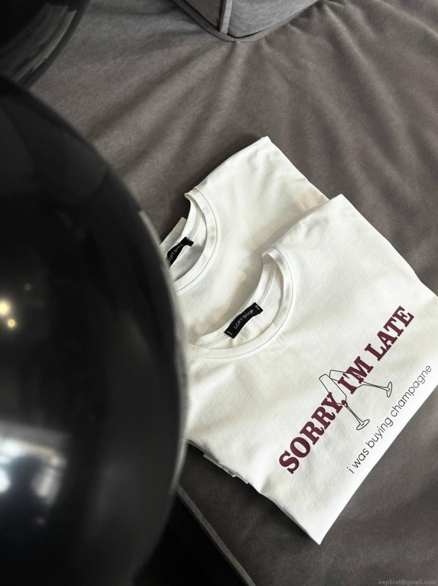 Text, Letters, Color Blocking, Champagne Glass, Loose Fit, Slogan Print