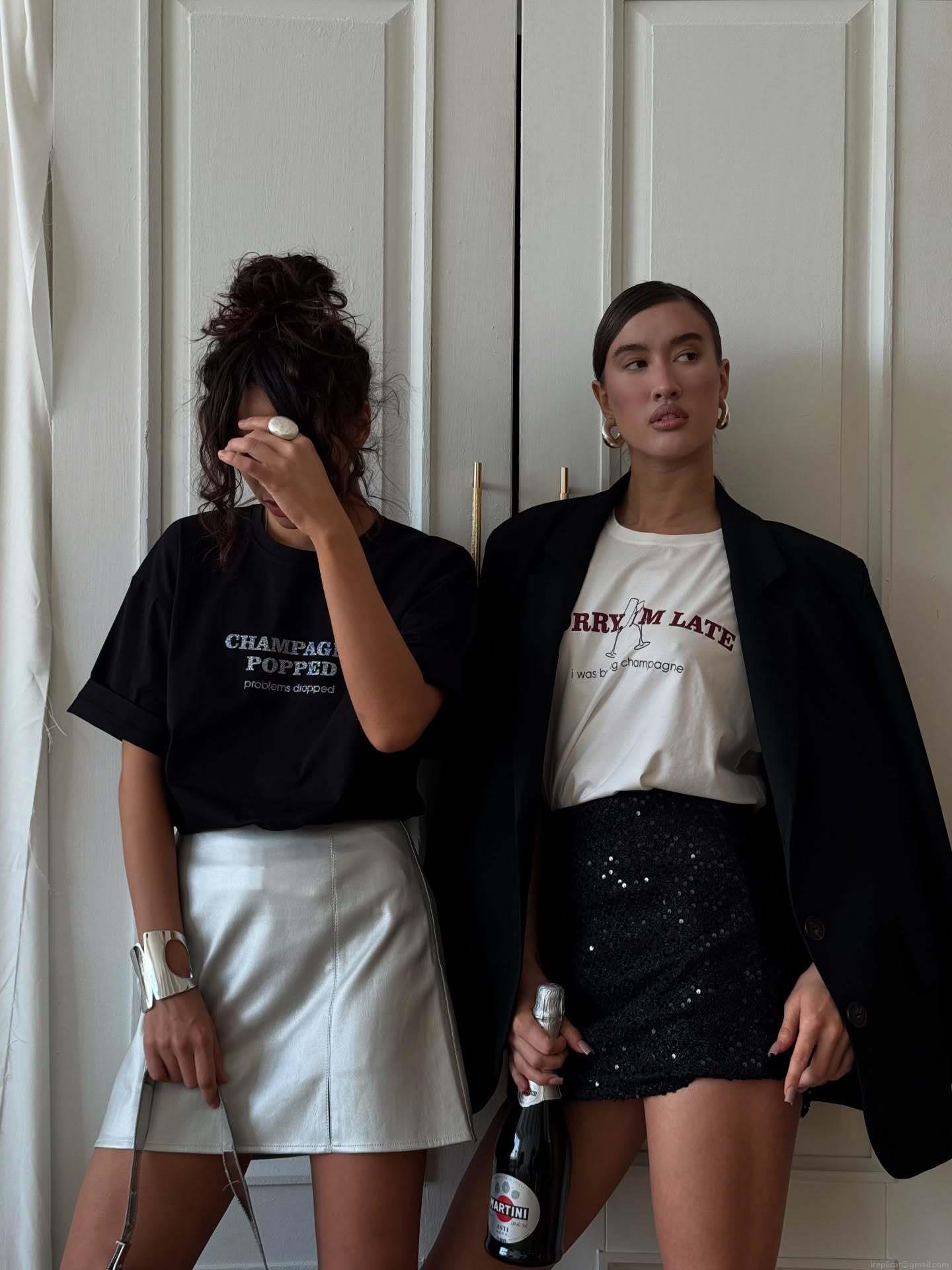 Women's Cotton T-Shirt Funny Slogan Champagne Print Short Sleeve Loose Fit Round Neck Tee Top for Summer Party Casual Streetwear