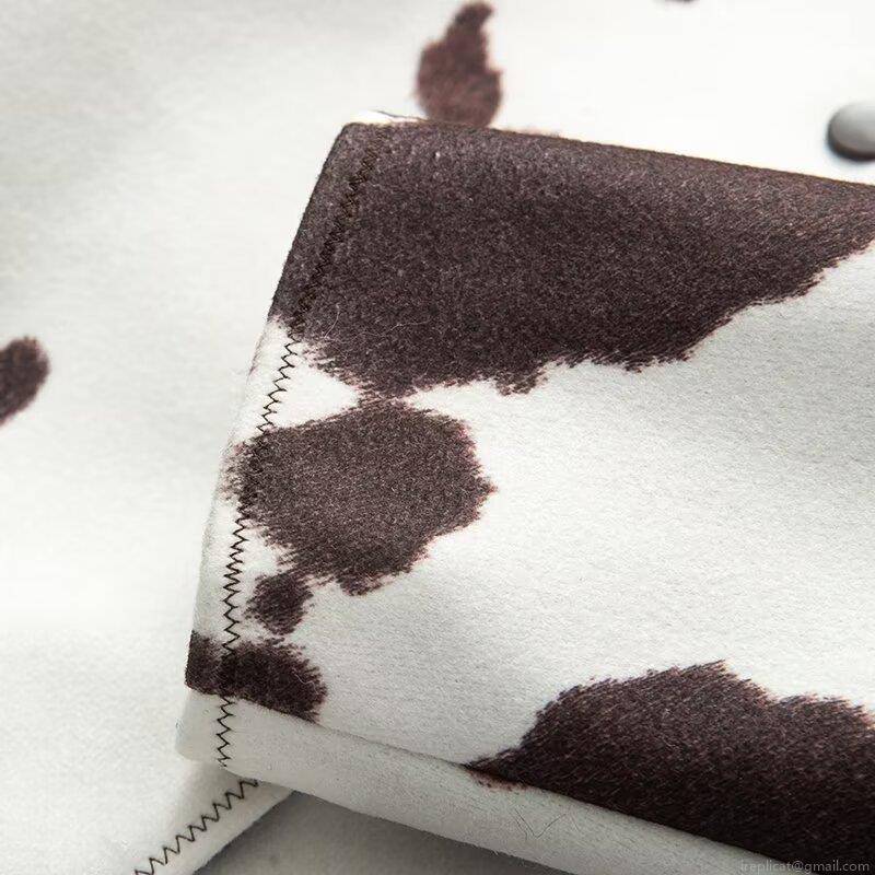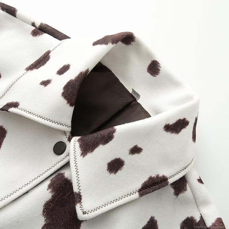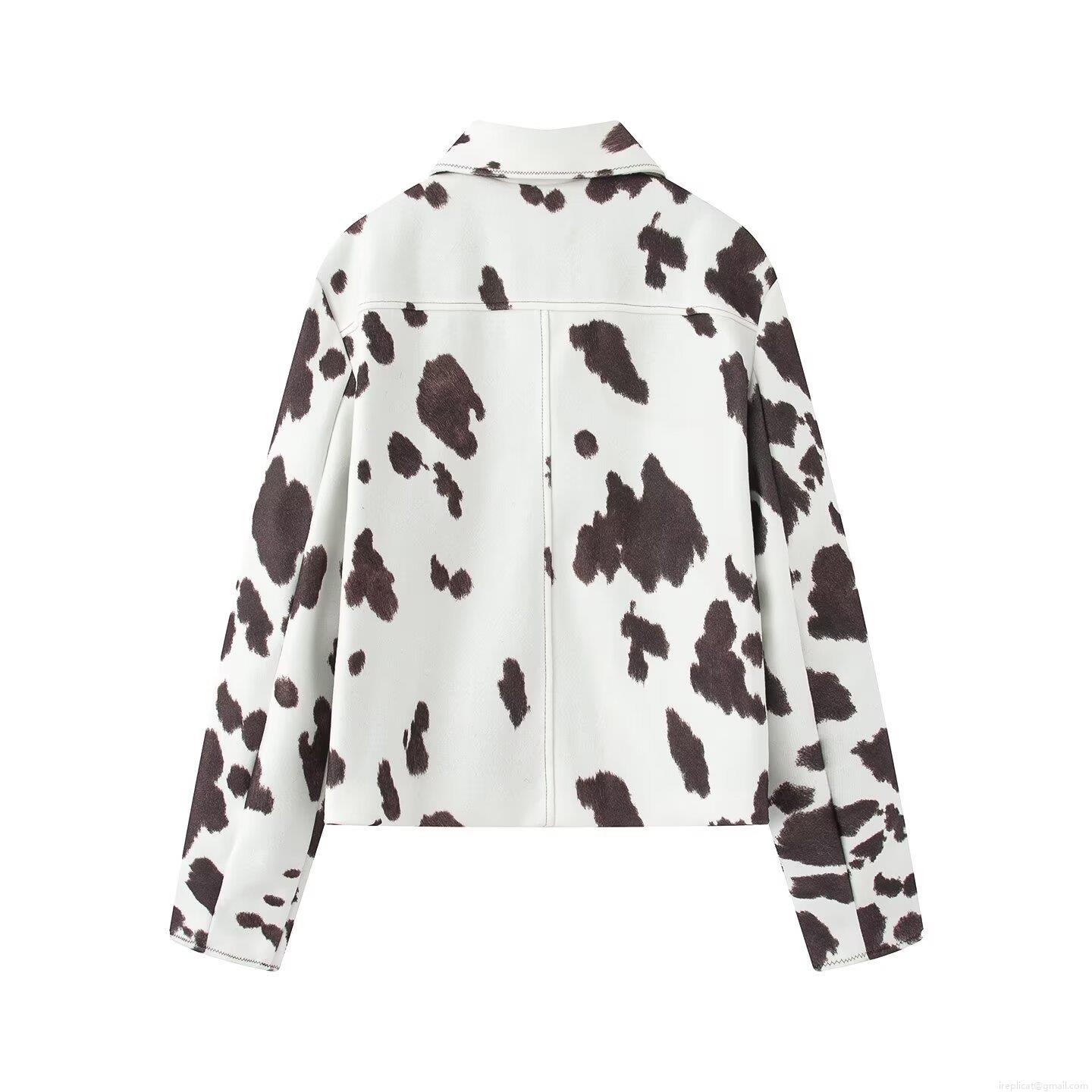 Women's Cow Print Short Jacket Vintage Lapel Single Breasted Long Sleeve Baseball Coat Fashion Streetwear Outerwear For Autumn Winter
