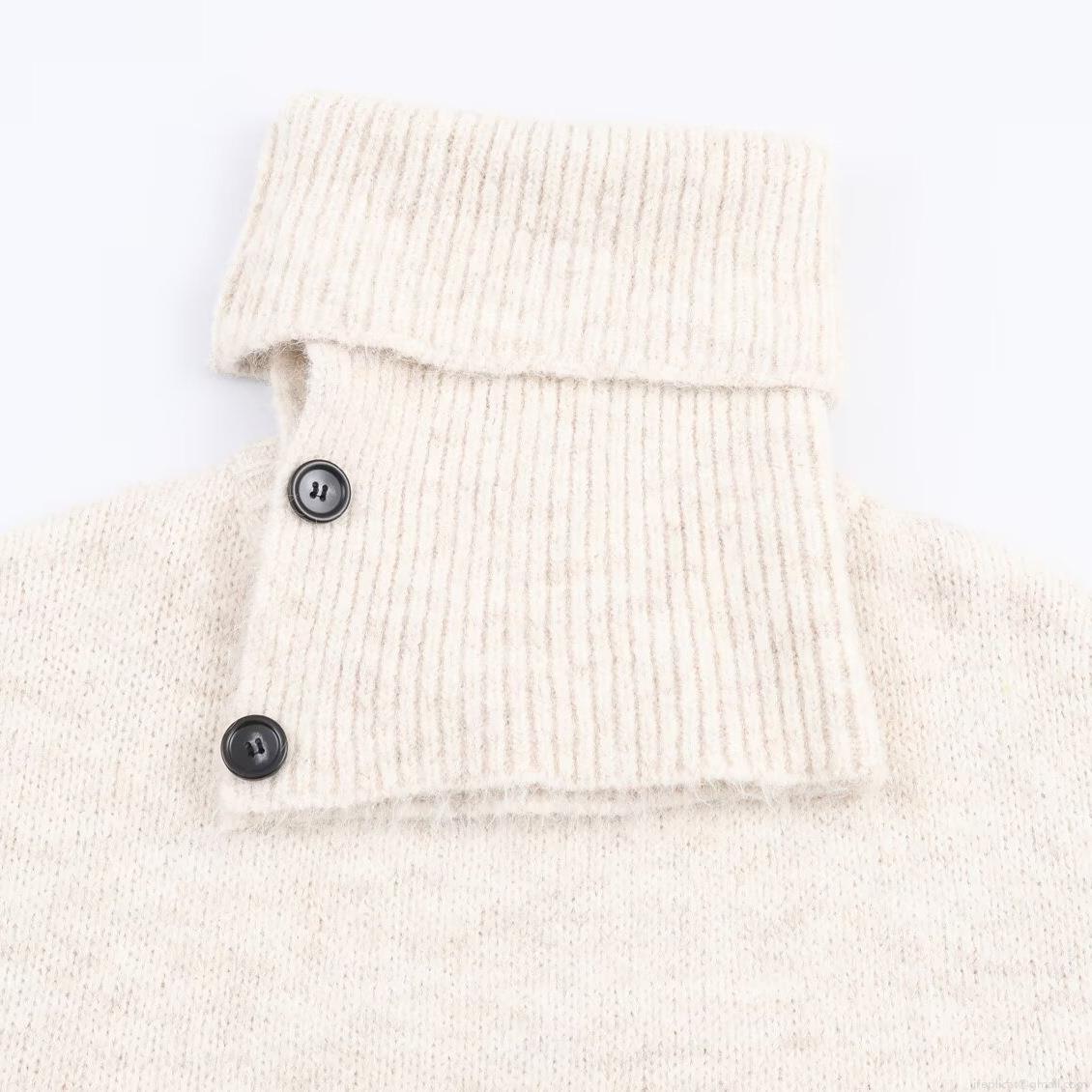 Women's Cowl Neck Knit Sweater Loose Fit Casual Solid Color Pullover Top With Decorative Buttons Soft Blended Yarn Long Sleeve Jumper For Autumn Winter