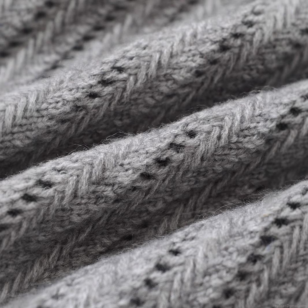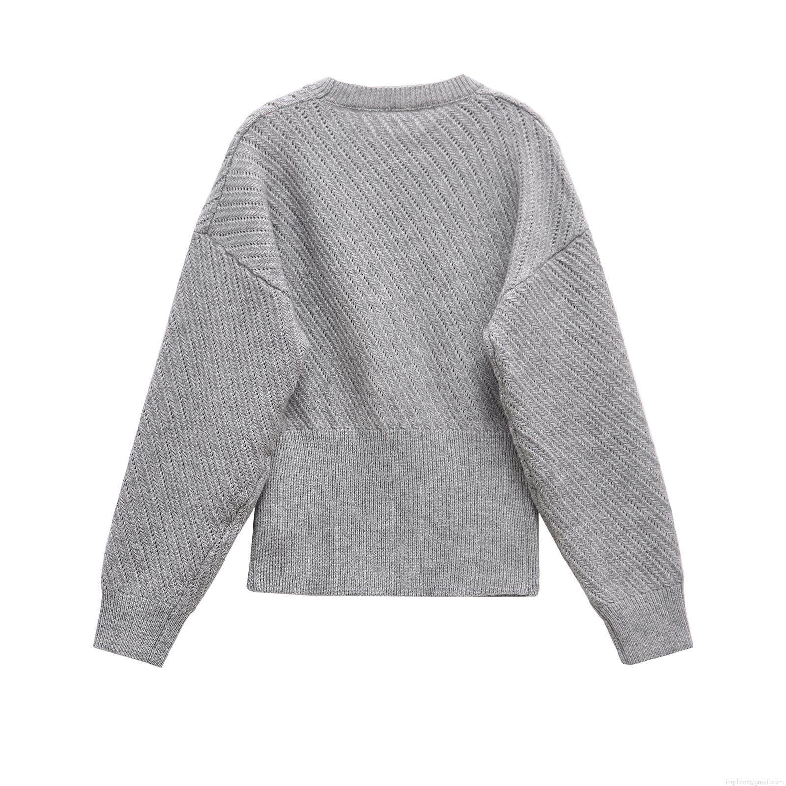 Women's Crew Neck Long Sleeve Knit Sweater 100% Polyester Hollow Diagonal Texture Pullover Top Casual Street Style Loose Fit Ribbed Jumper for Women Autumn Winter Gray
