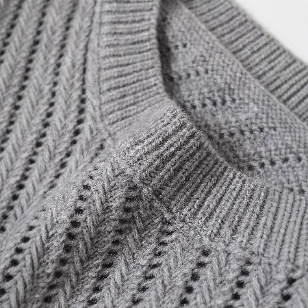 Solid Color, Openwork Weave, Splicing Process, Drop Shoulder Design, Threaded End, Diagonal Texture
