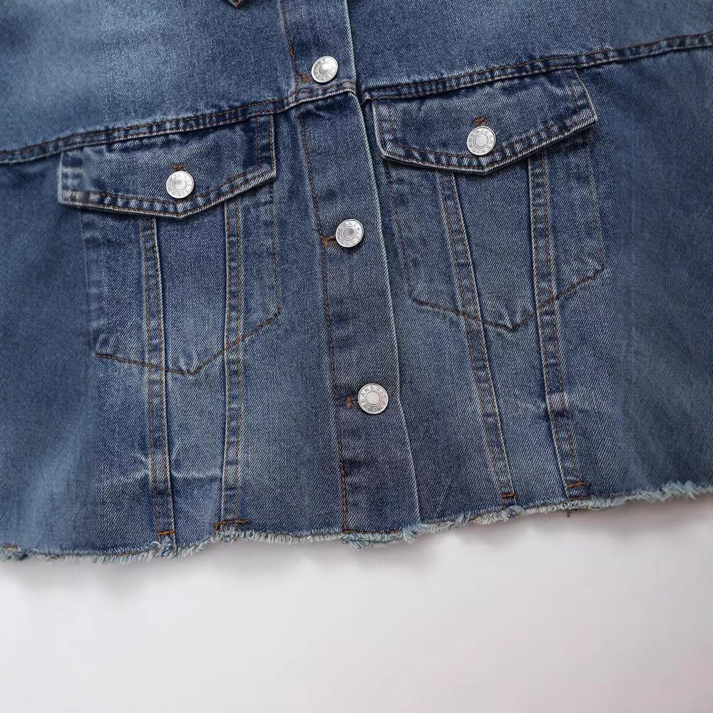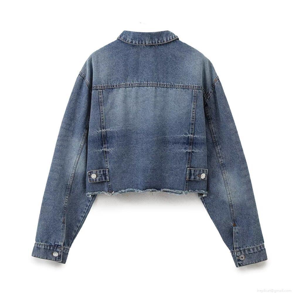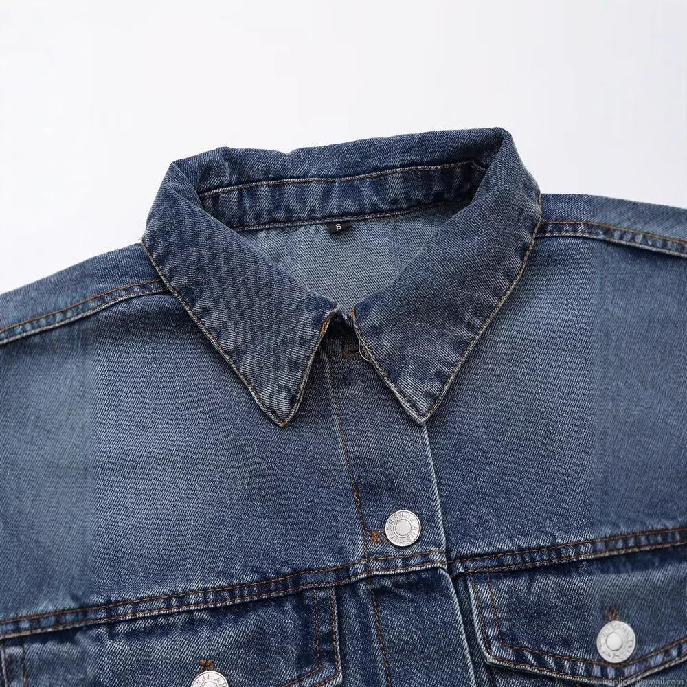 Women's Cropped Denim Jacket Frayed Hem Cotton Blend Jean Coat Casual Streetwear Outerwear For Women
