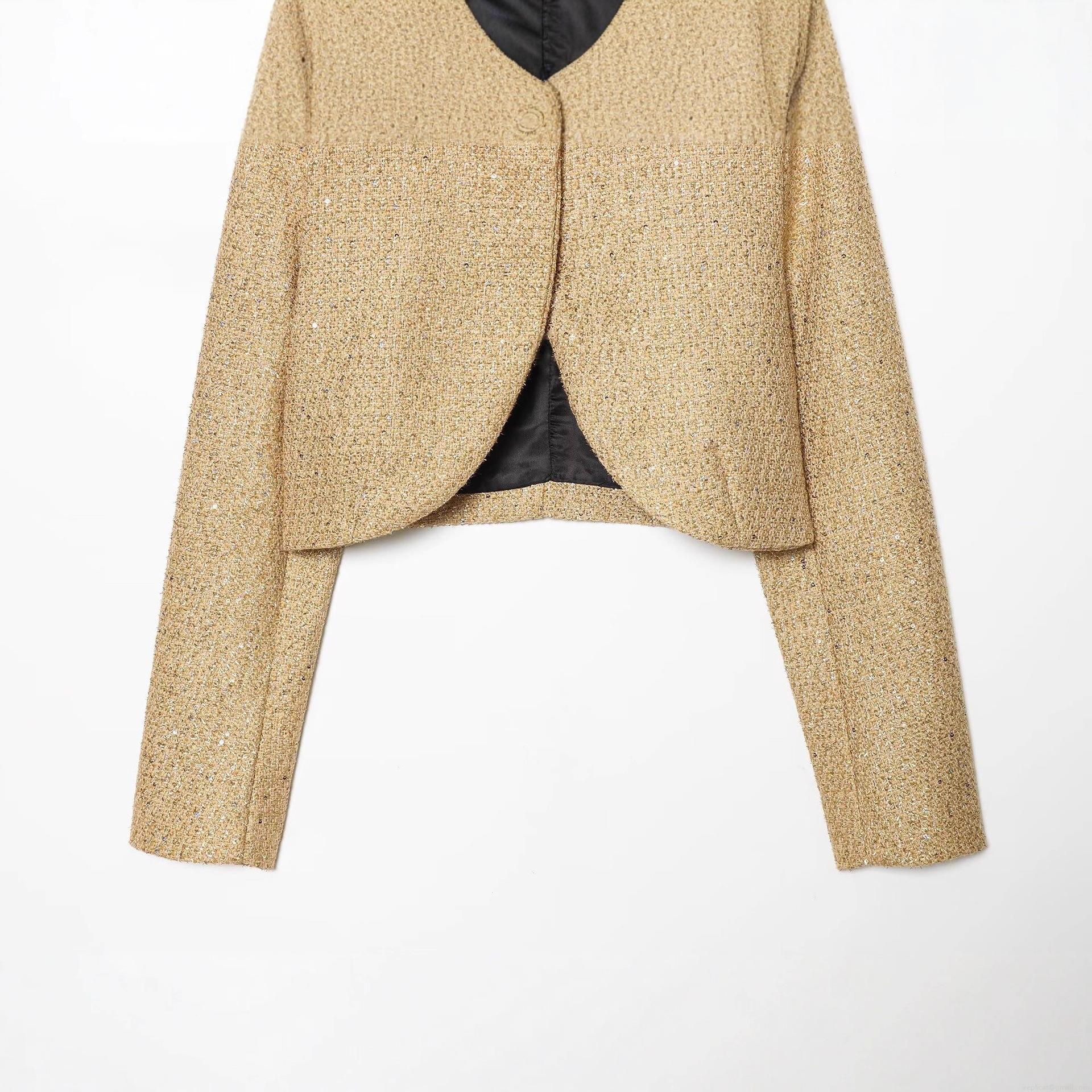 Solid Color, Tweed, Sequin Decoration, Woven Texture, Metal Wire, Gold Embossed Buttons