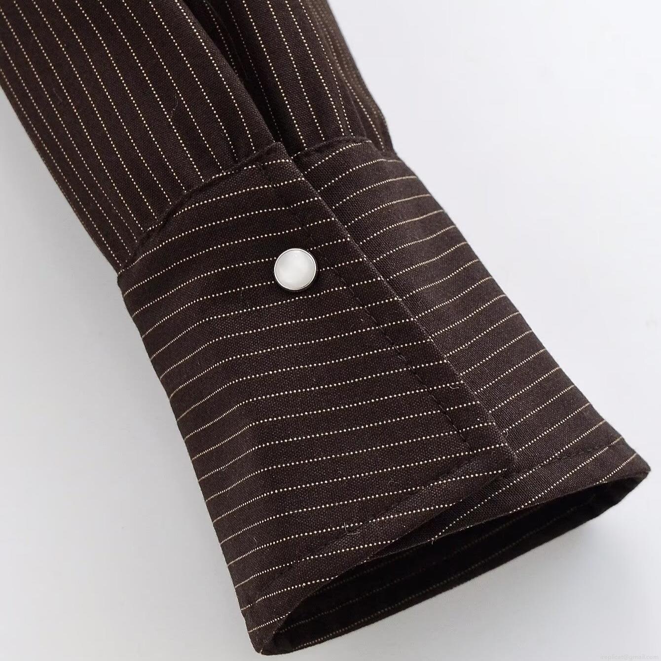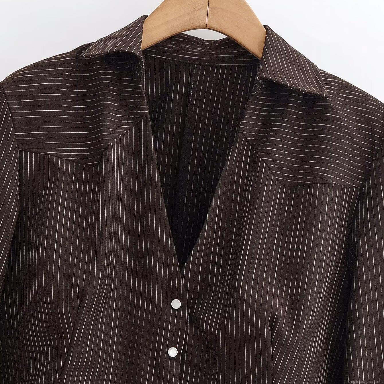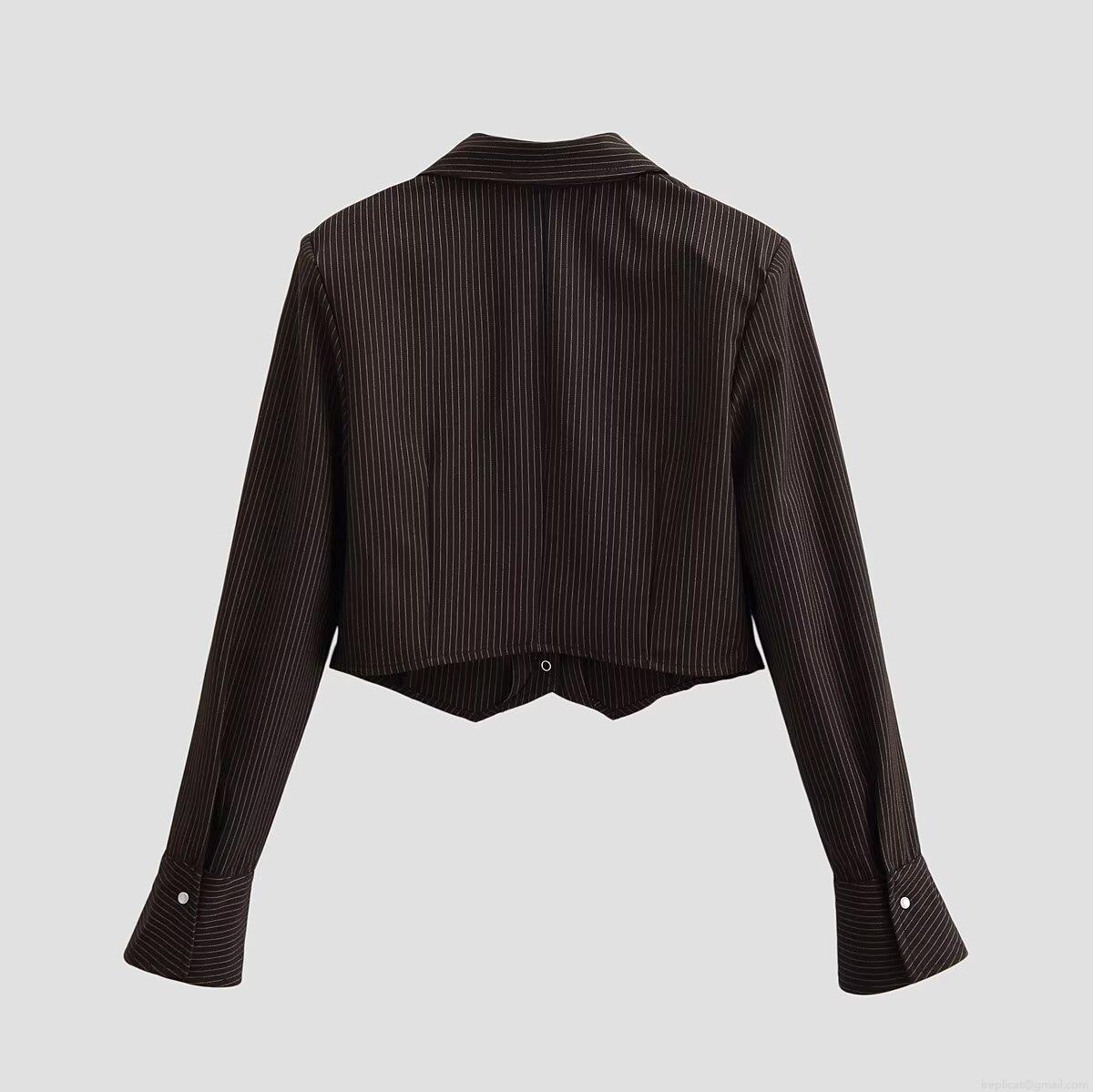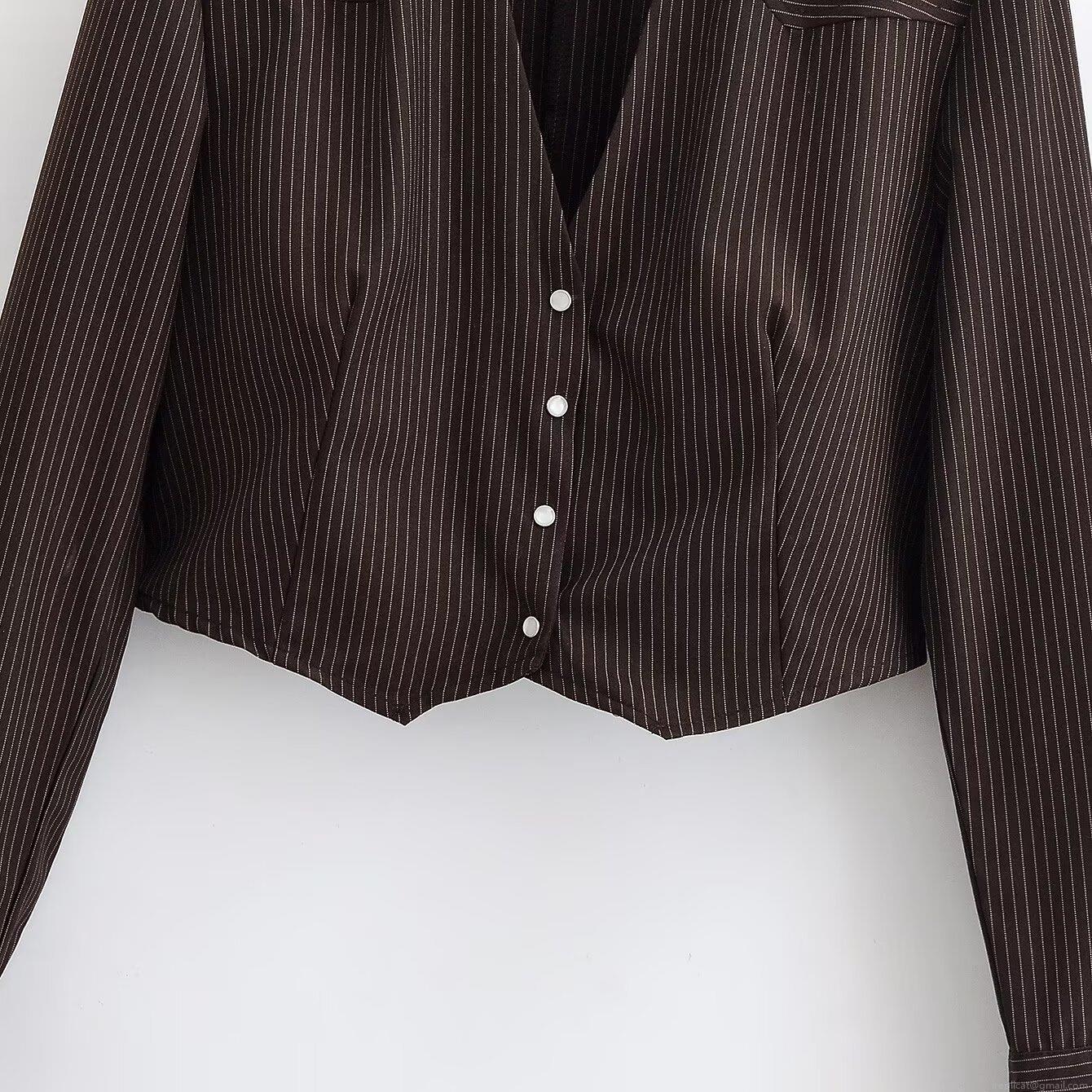 Women's Cropped Striped Shirt Jacket Fashion Long Sleeve Lapel Button Down Blouse Vintage Casual Short Coat For Women Autumn Winter Office Wear