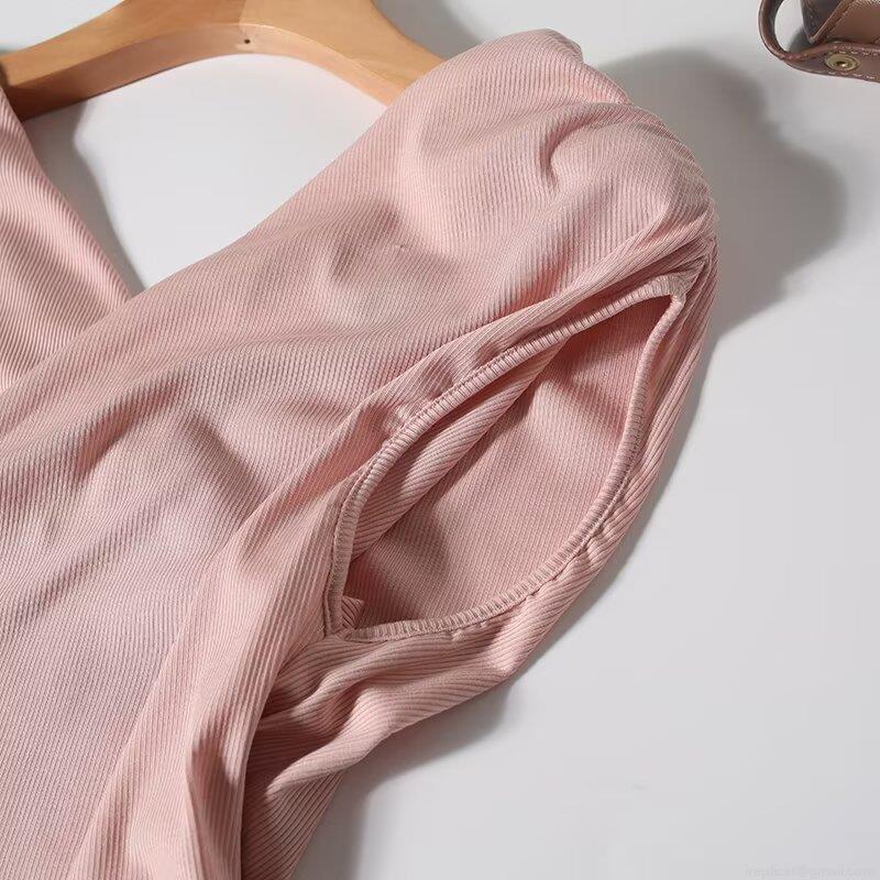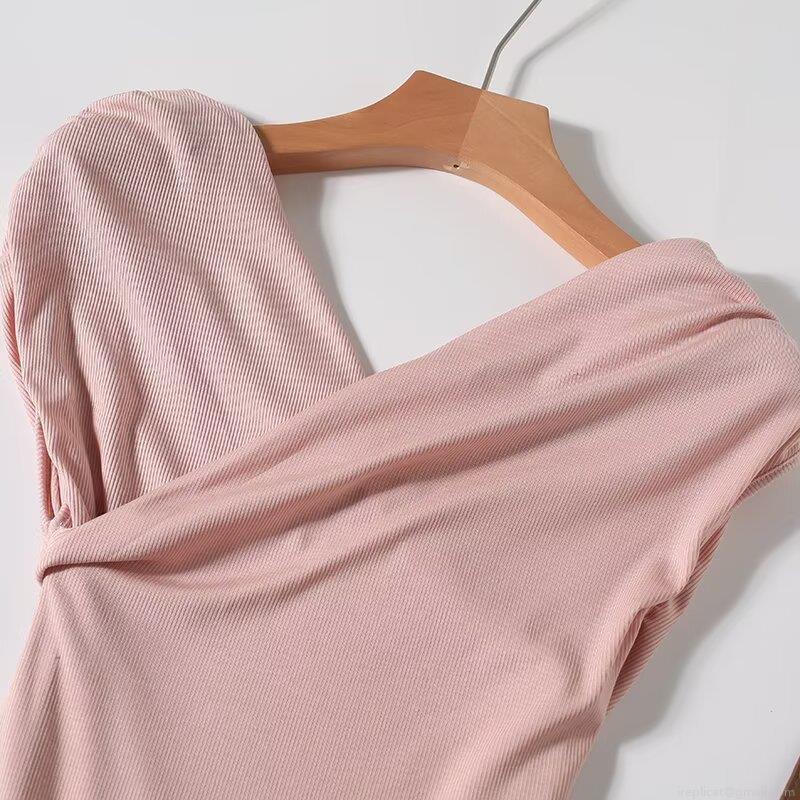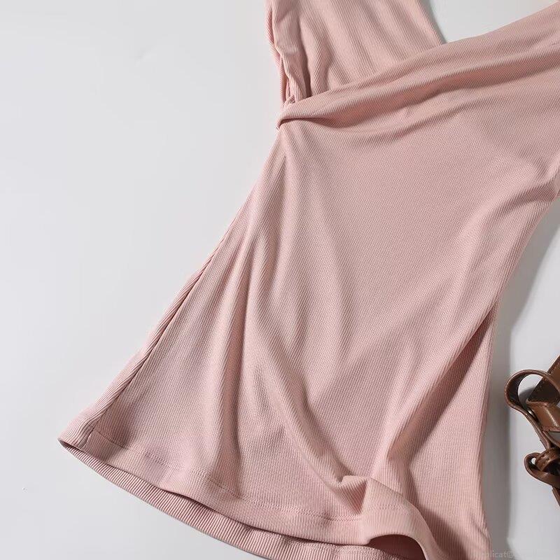 Solid Color, Ribbed, Piping, Self-cultivation, V-neck Cross