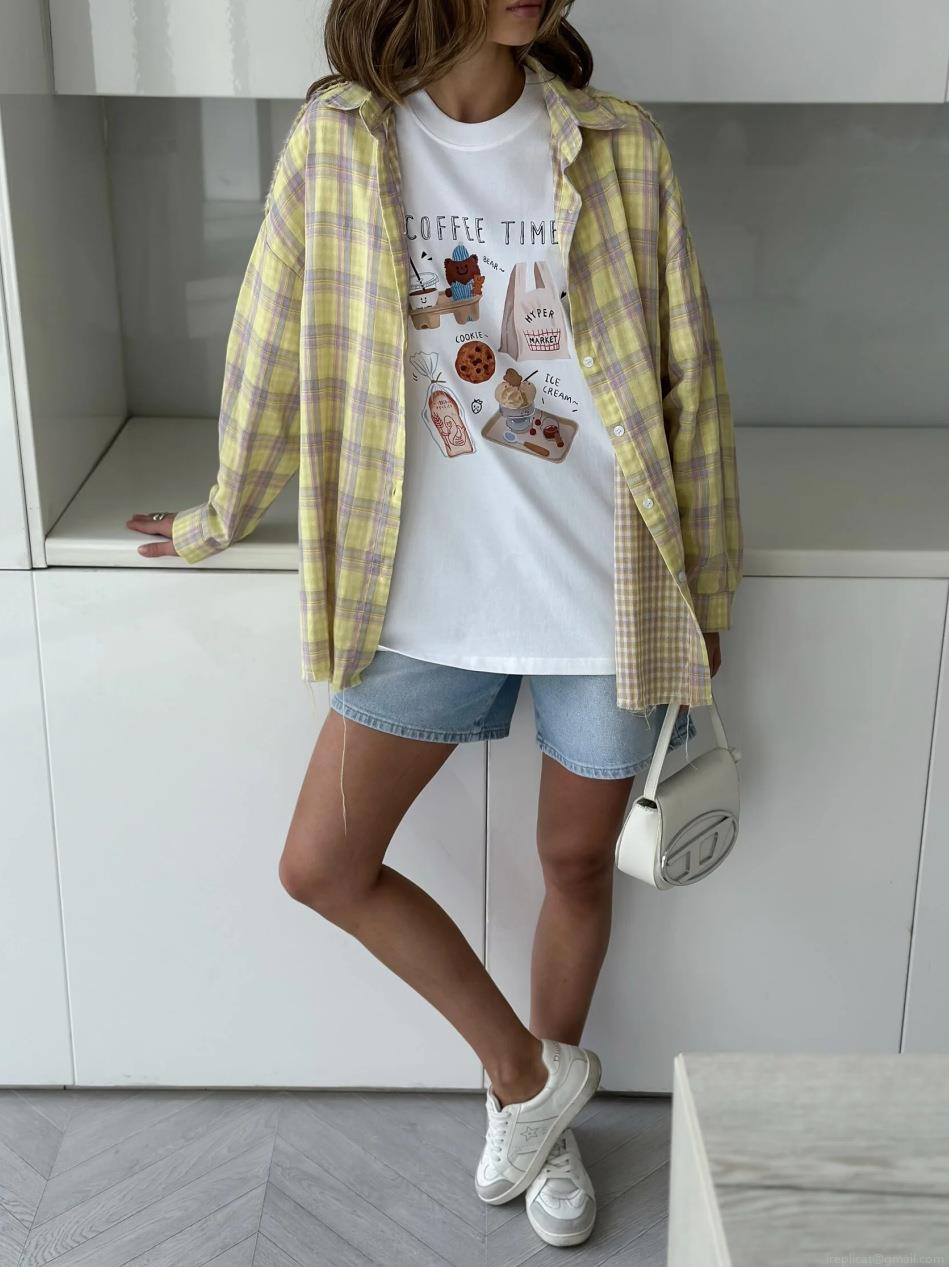 Women Striped Knitted T-Shirt Mercerized Cotton Round Neck Short...