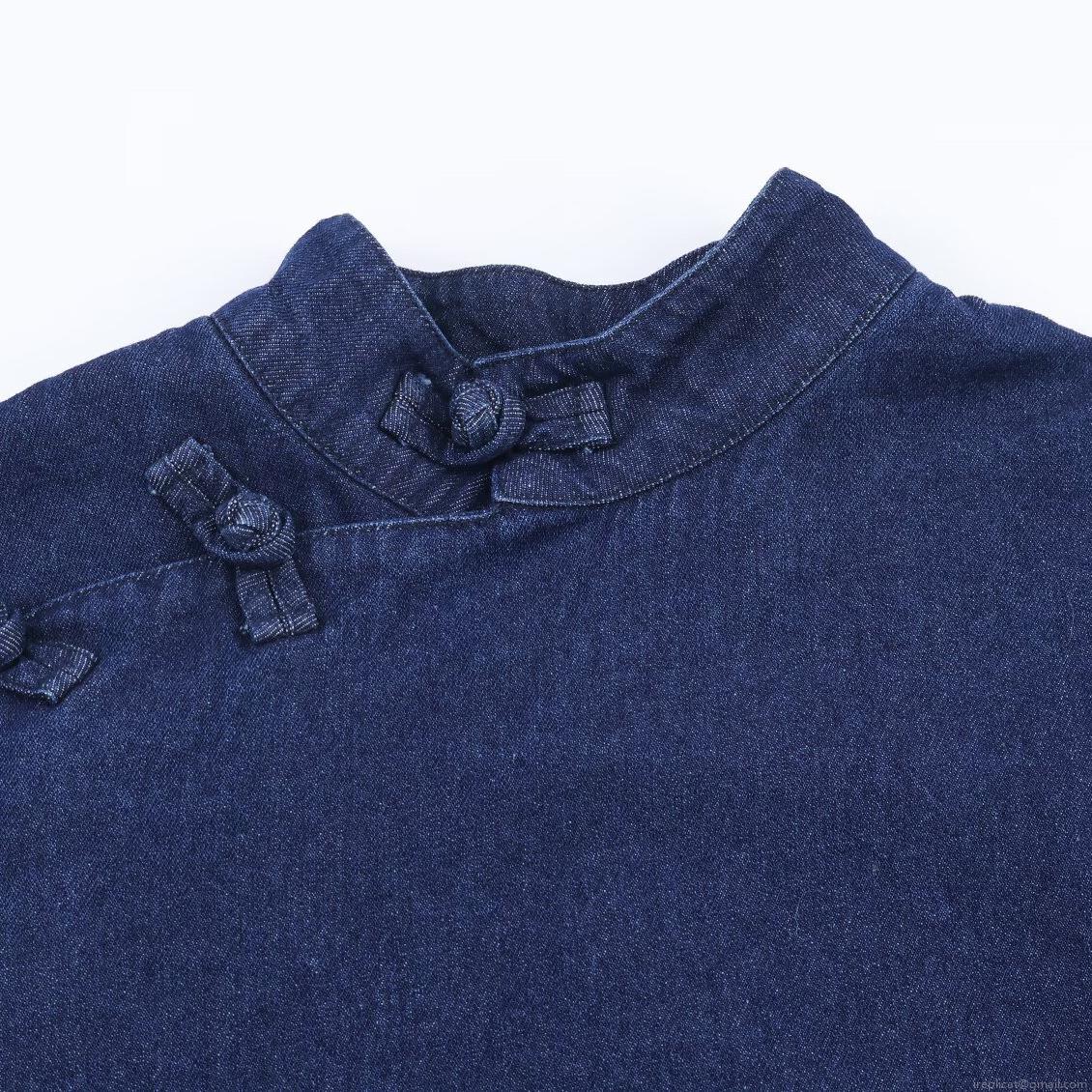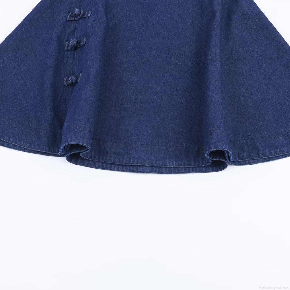 Women's Dark Blue Denim Cloak Jacket Chinese Style Frog Button Mandarin Collar Casual Sweet Loose Winter Poncho Outerwear Top