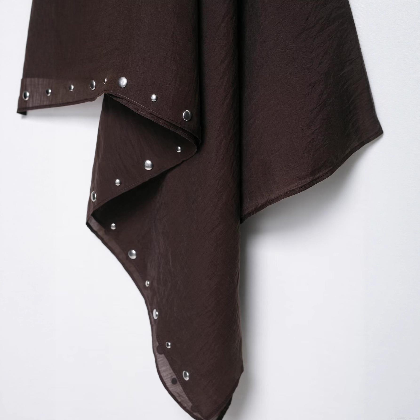 Women's Dark Brown Studded Poncho Jacket Irregular Hem Sleeveless Scarf Collar Polyester Outerwear Chic Autumn Streetwear Top