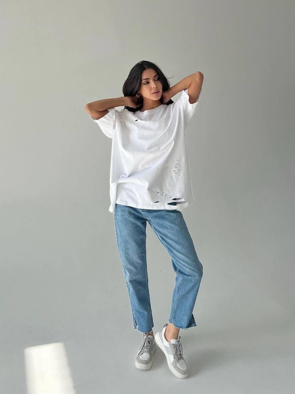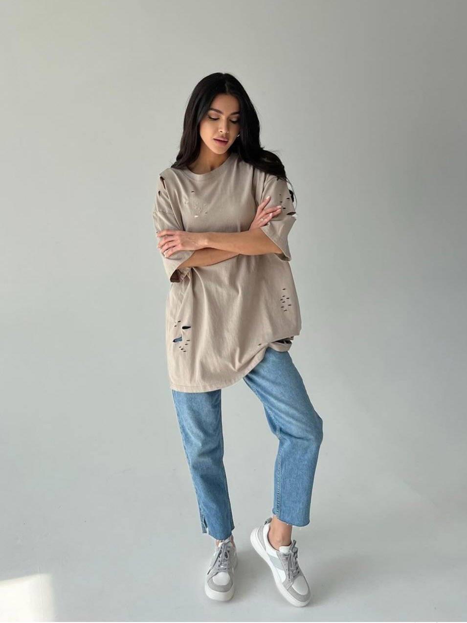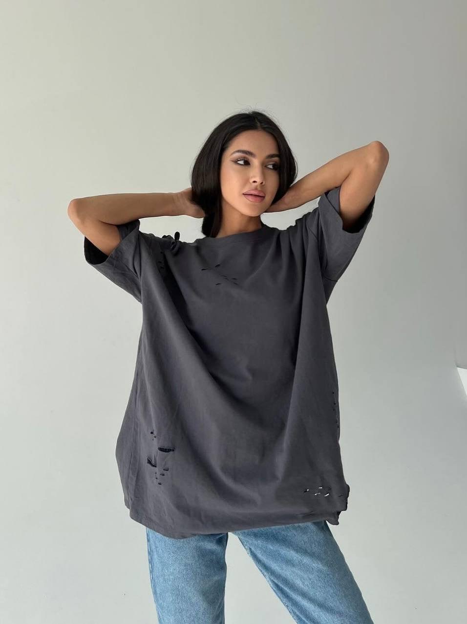 Women's Distressed Ripped T-Shirt 95% Cotton Oversized Drop Shoulder Crew Neck Vintage Wash Top for Summer Casual Streetwear