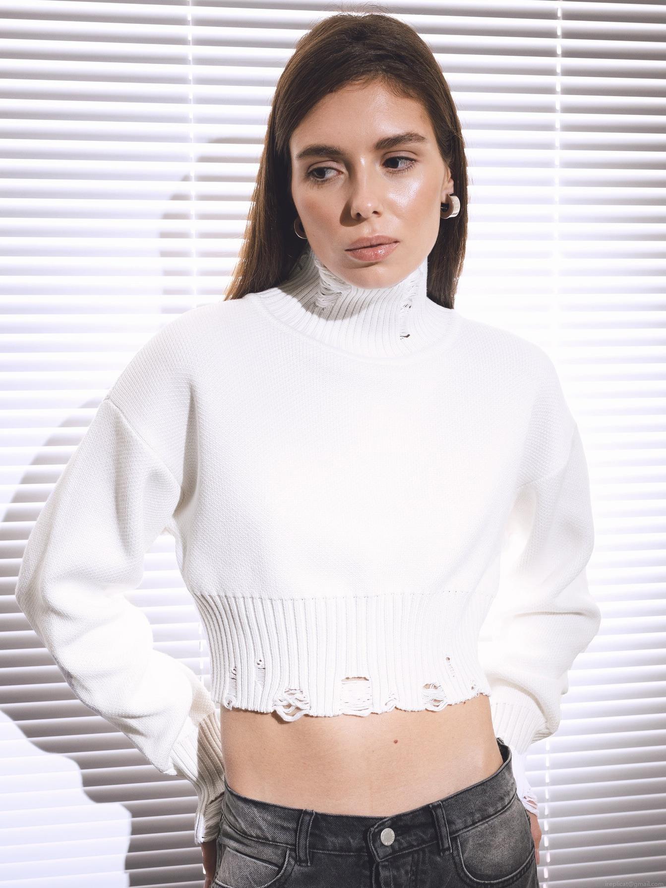 Solid Color, Turtleneck, Distressed And Ripped, Short Crop Top, Ribbed Finishing