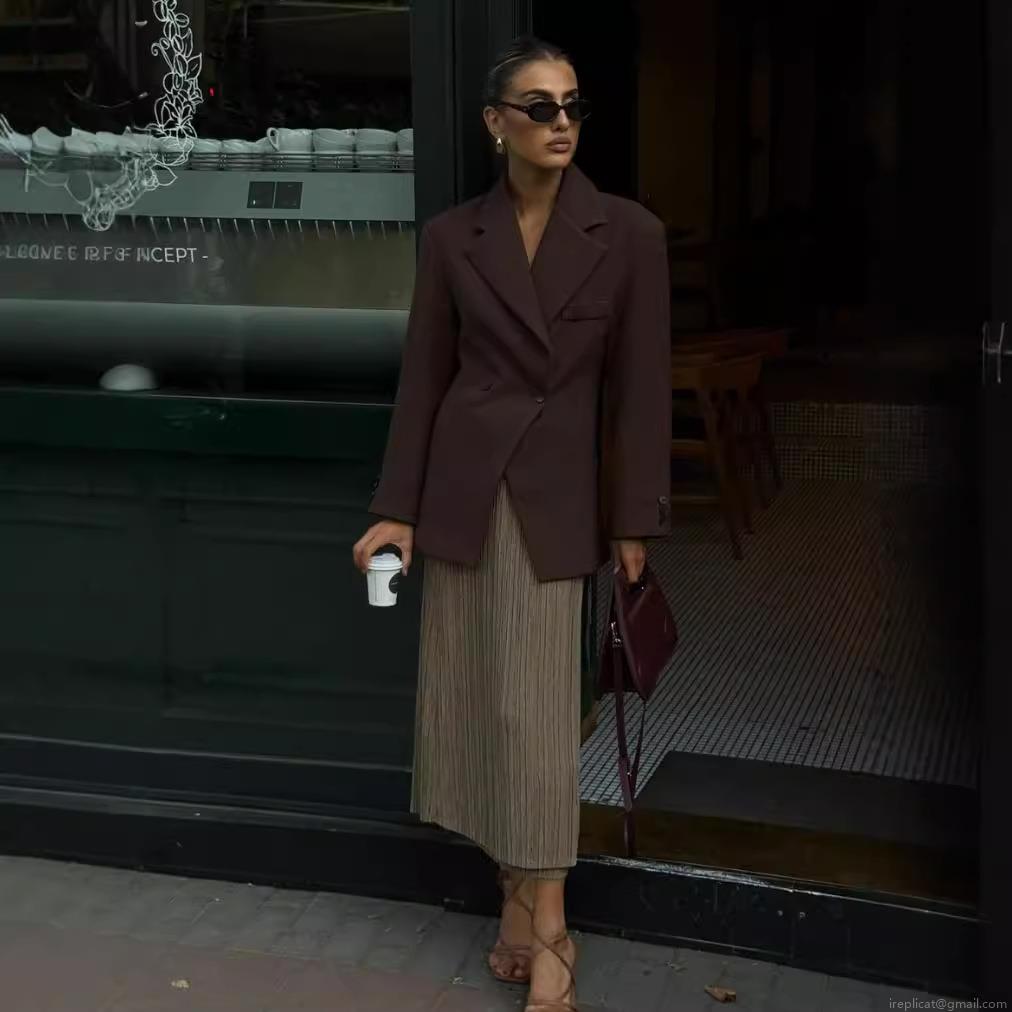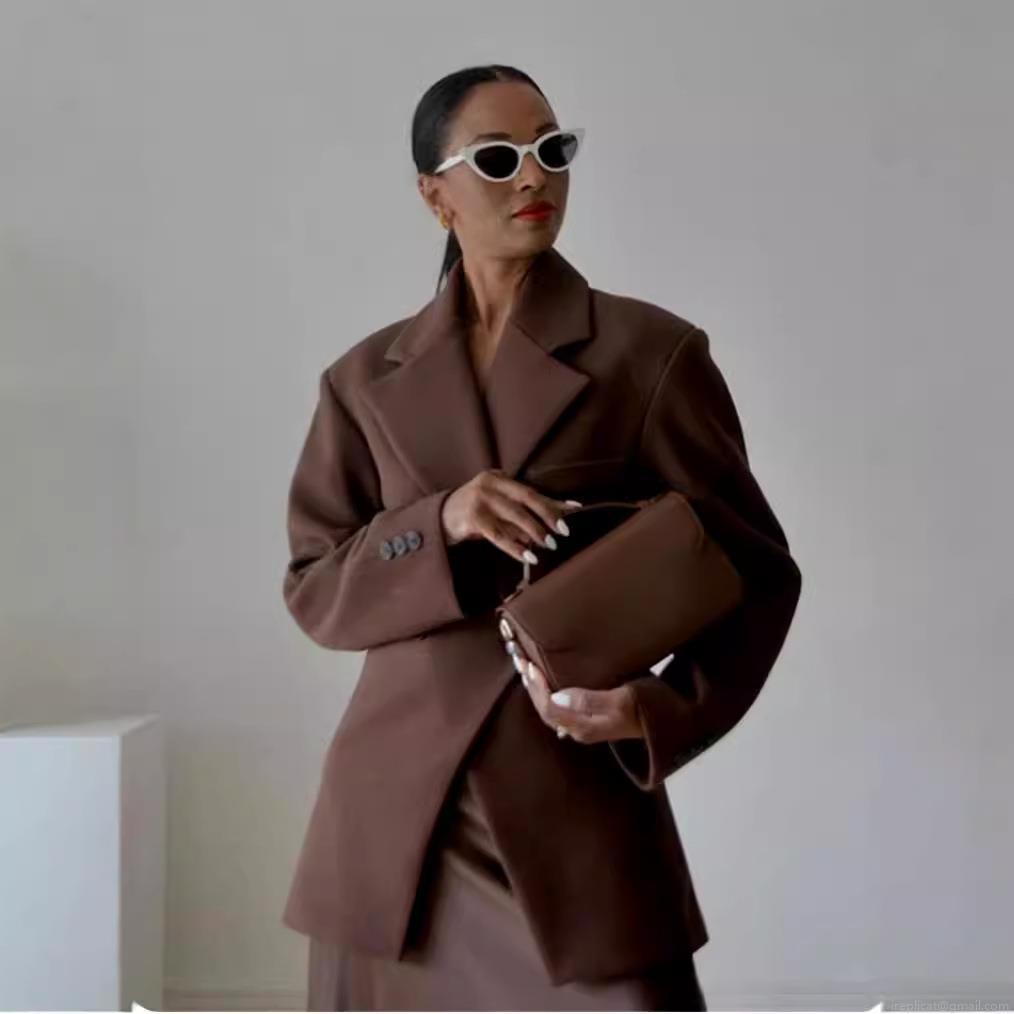 Women's Double Breasted Blazer Coffee Brown Structured Slim Fit Waist Suit Jacket Notch Lapel Office Commute Woven Polyester Outerwear Autumn Fashion