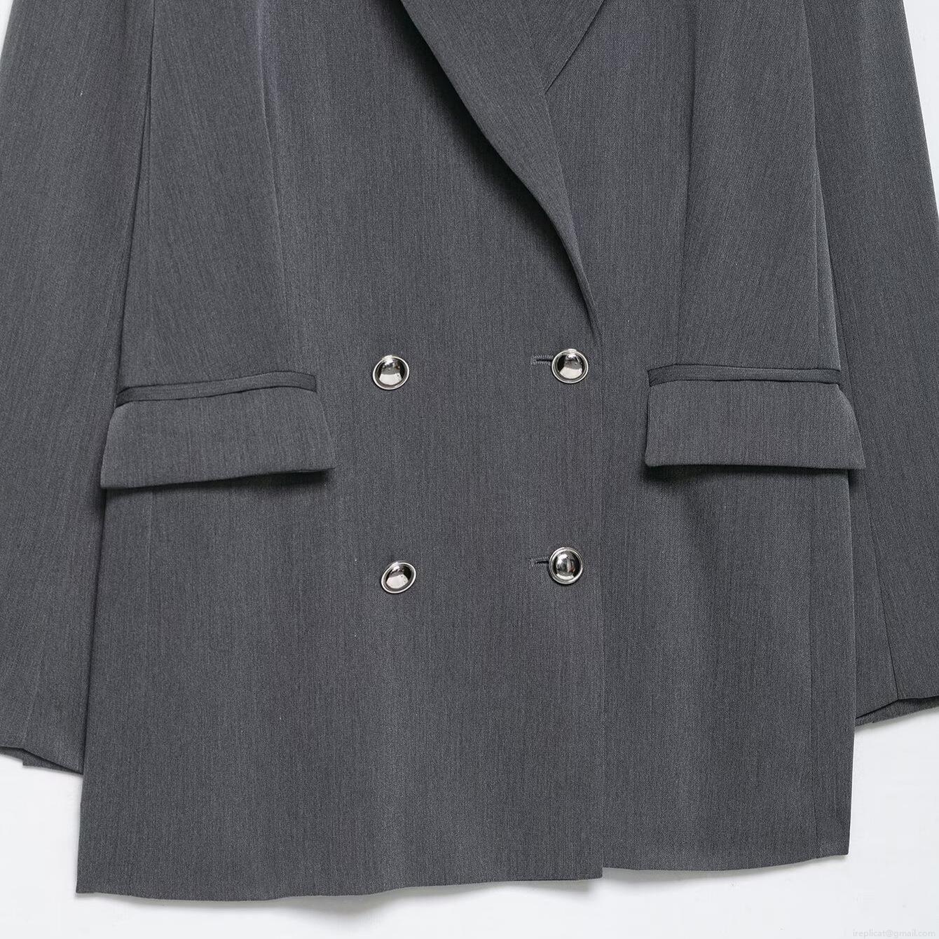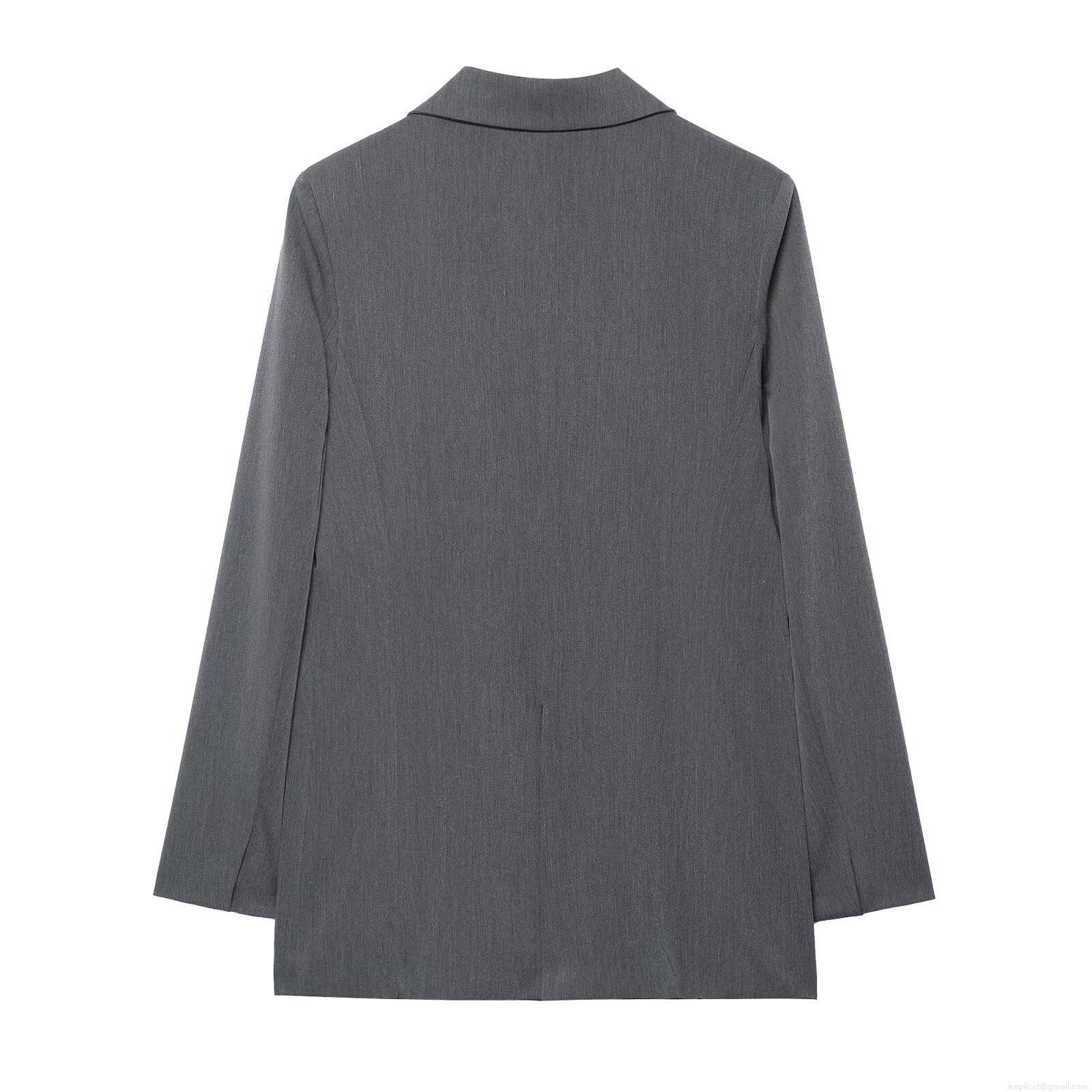 Women's Double Breasted Blazer Jacket 100% Polyester Solid Color Professional Office Suit Coat With Metal Buttons Slim Fit Casual Outerwear