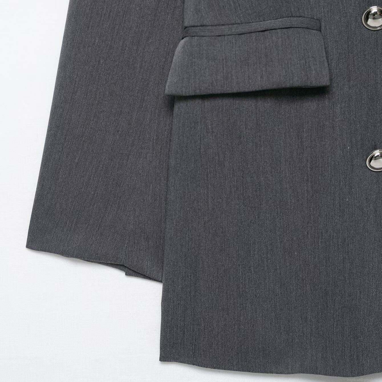 Solid Color, Double-breasted, Metal Round Buckle, Notch Collar, Covered Patch Bag